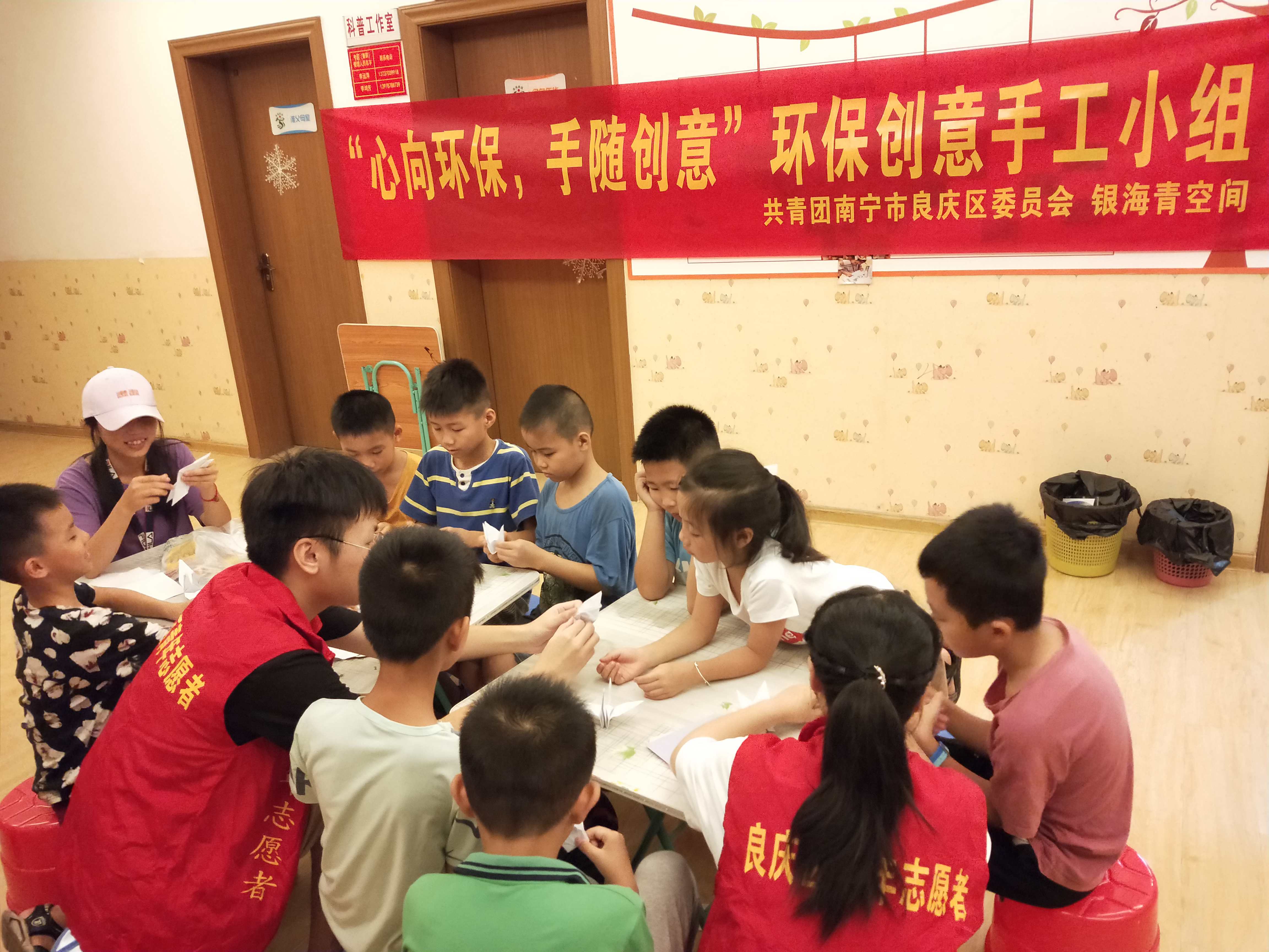 银海社区是“全国民族团结进步模范集体”、“全国民族团结进步示范社区”,是一个居住小区、私宅、企业混合型的社区。7月8日至9日,为了让小朋友们多层面了解中华优秀传统文化,了解广西十二个世居民族的优秀文化,志愿者们开展了一系列丰富多彩的课堂教学活动,其中包括手工趣味课堂、历史知识讲授、民族团结知识分享以及歌曲演唱等。