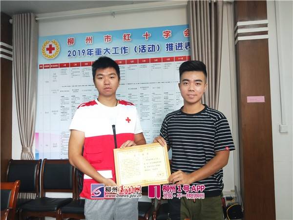 9月18日上午,19岁的郭浩彦来到柳州市红十字会,把见义勇为奖金中的5000元捐给市红十字会,希望帮助到更多需要帮助的人。