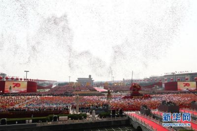 “70年在人类历史长河中只是弹指一挥间,但对中国人民和中华民族来讲,这是沧桑巨变、换了人间的70年。中华民族迎来了从站起来、富起来到强起来的伟大飞跃,迎来了实现伟大复兴的光明前景。对此,每个中华儿女都感到无比自豪!”
