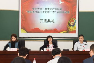 10月15日上午,培训班开班仪式在中南大学继续教育学院举行,共青团广西区委党组成员、副书记黄世芳对全区各级各相关单位为广西预防青少年违法犯罪工作作出的努力表示衷心感谢,并要求参加此次培训的学员通过不断加强学习,持续提升预防青少年违法犯罪工作的能力和水平,更好应对新挑战、处理新矛盾、解决新问题、完成新任务。