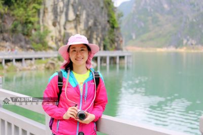 2017年4月22日,黄文秀与记者一起在凌云县采访时留下的照片。 记者 陈 强 摄