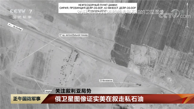 俄罗斯国防部26日公布的卫星图像,主要展示了美军在叙利亚东部的采油点、运输车辆以及运输通道等信息。俄罗斯国防部发言人科纳申科夫表示,这些卫星图像证明,在叙利亚境内的极端组织被粉碎之前和之后,美国都在控制叙利亚石油开采和出口运输,美国每月通过走私叙利亚石油赚取3000多万美元,美国通过军方人员与私人军事公司对这一行为实施保护,石油开采所使用的设备也由西方主要公司提供。
