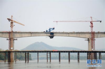 这是2019年5月21日在老挝拍摄的首跨合龙的中老铁路琅勃拉邦湄公河特大桥。中老铁路北起两国边境,南抵万象,是第一个以中方为主投资建设、中老共同运营并与中国铁路网直接连通的境外铁路项目。线路全长414公里,其中桥梁长度近62公里,隧道长度近198公里。中老铁路全线采用中国技术标准、使用中国设备,2016年12月全线开工,计划于2021年12月建成通车。 新华社发(段小平摄)