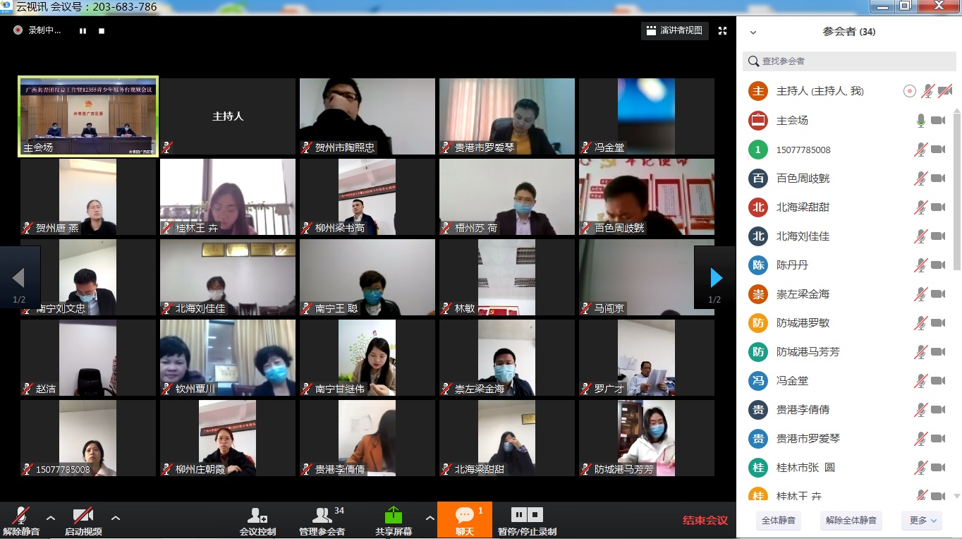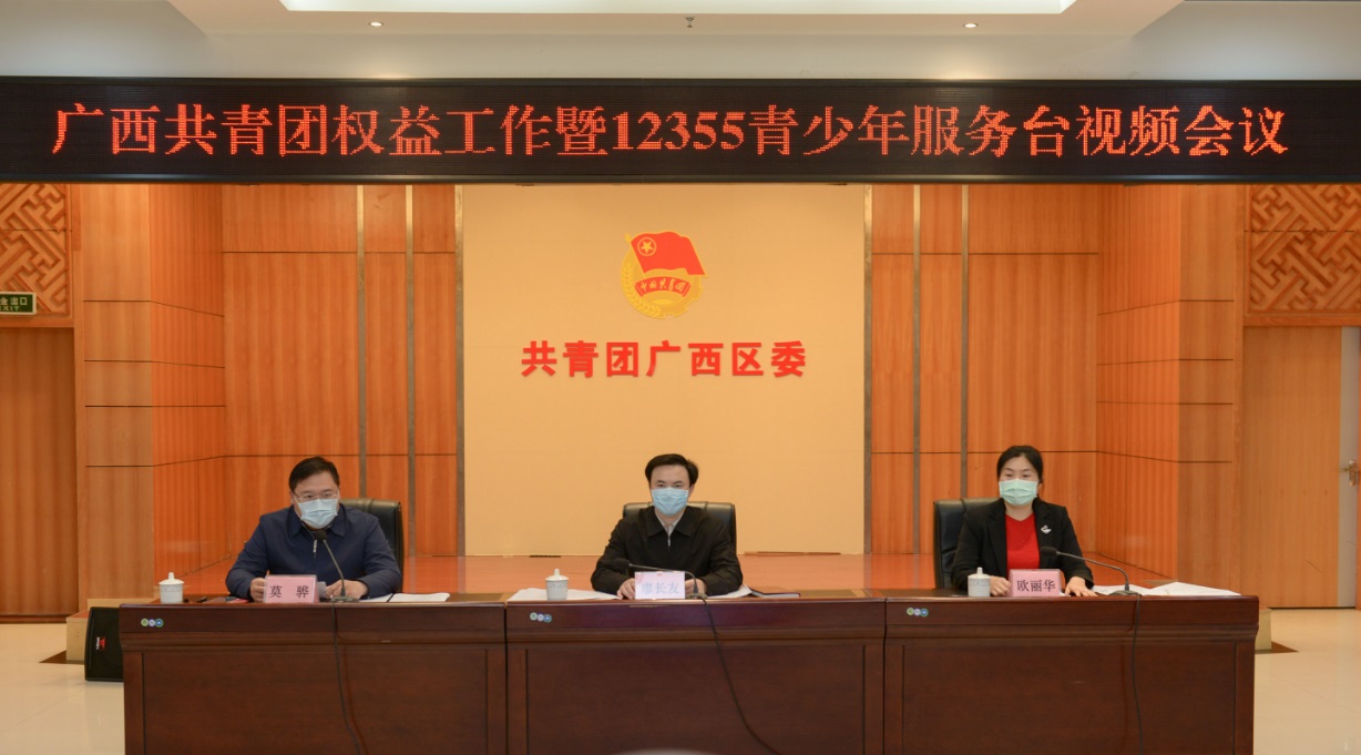 4月24日上午,广西共青团权益工作暨12355青少年服务台视频会议在南宁举行,会议对过去一年全区权益工作和12355青少年服务台工作进行了总结,同时对下一阶段工作进行部署。共青团广西区委副书记廖长友、各市团委分管权益工作的副书记、权益工作负责人、12355青少年服务台负责人及共青团广西区委权益部全体人员共30余人参加会议。