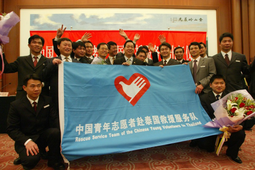 2005年2月,中国第一支参与印度洋海啸灾后重建的志愿者队伍——中国青年志愿者赴泰国救援服务队赴泰国开展救援服务。