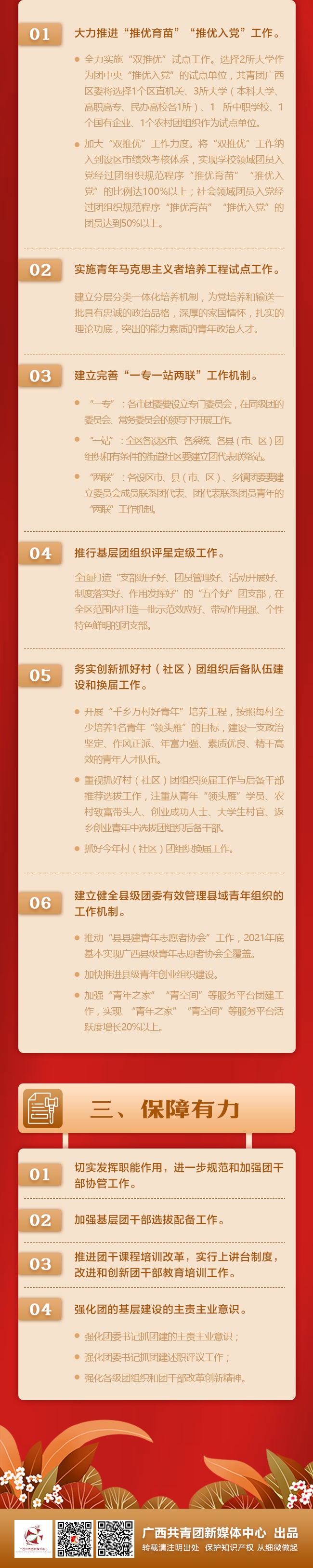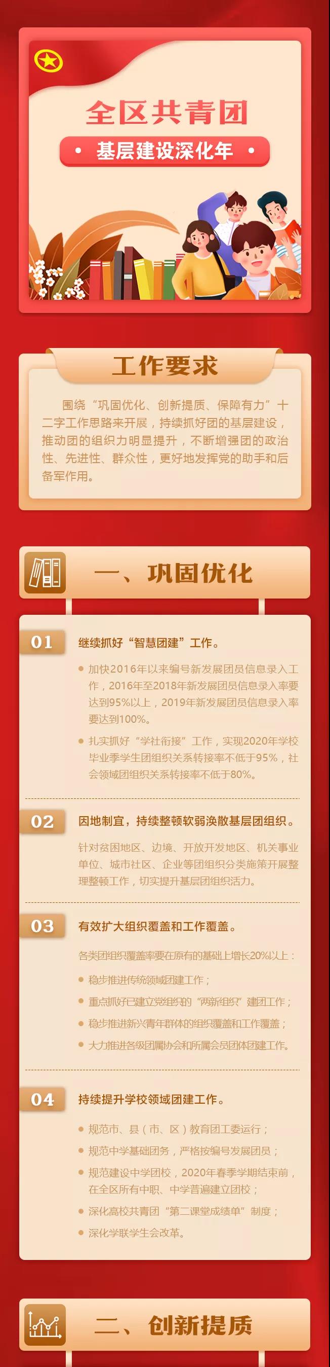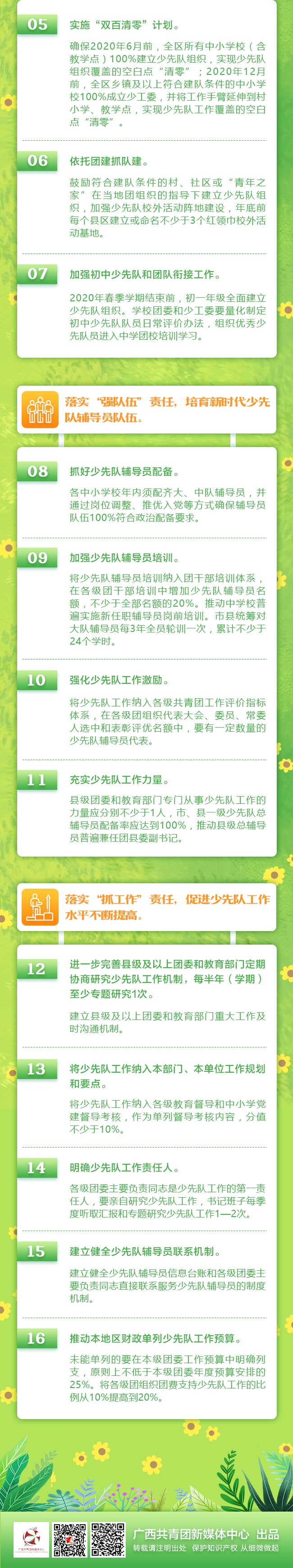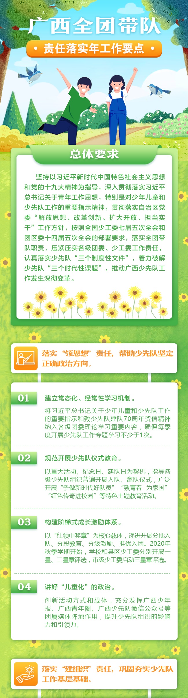 会议指出,思想认识要再提升,进一步深刻理解抓好团的基层建设和少先队工作的重大意义。“树立大抓基层的鲜明导向, 推动改革举措落到基层,使基层真正强起来”是习近平总书记对共青团的殷殷嘱托和明确要求,我们坚定坚决、真刀真枪地通过一系列举措大抓基层,就是落实总书记对共青团的政治交代。团的基层建设要常抓不懈,久久为功,开展“全区共青团基层建设深化年”,持之以恒抓好团的基层建设,始终把它作为最关注的一项日常工作,最基础的一项根基工程反复抓、抓反复,目标到2022年建团100周年时,实现团的基层薄弱状况基本扭转,团的组织力明显提升。习近平总书记强调指出“培养好少年儿童是一项战略任务”,自治区党委鹿心社书记对壮乡少年提出殷切希望,当前的少先队工作正处于历史上最好的时期。我们开展“全团带队责任落实年”,重点就是要解决在思想上对落实全团带队职责认识不到位、在措施上把“带”字落到实处不到位的问题,真正履行好“领思想”“建组织”“强队伍”“抓工作”职责。