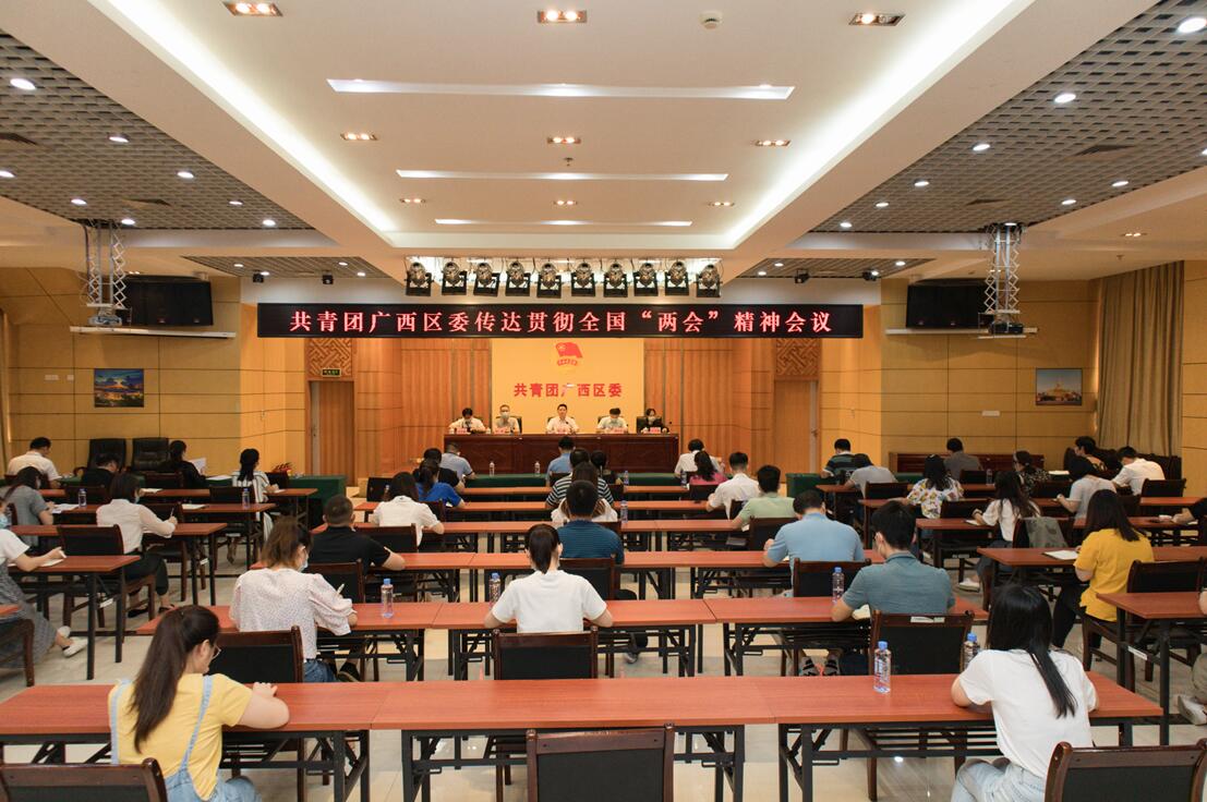 6月1日,共青团广西区委召开传达贯彻全国两会精神大会,传达习近平总书记在全国两会上的重要讲话精神和自治区传达贯彻全国两会精神大会的会议精神,研究贯彻落实措施,会议由团区委书记李楚主持。