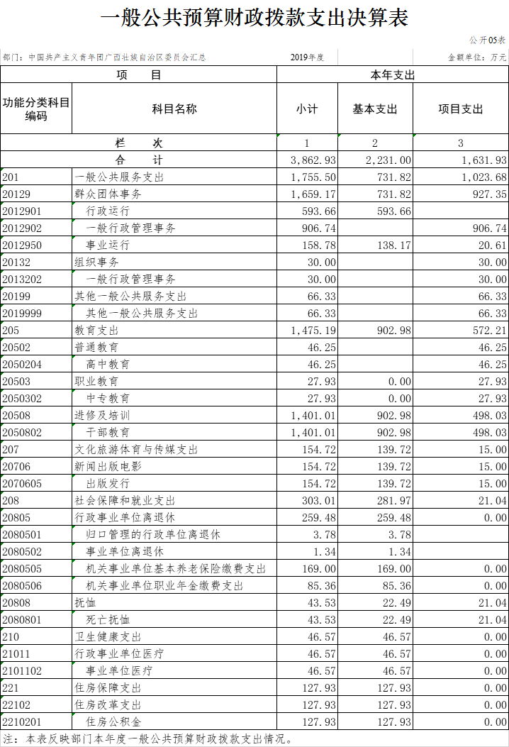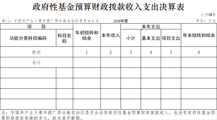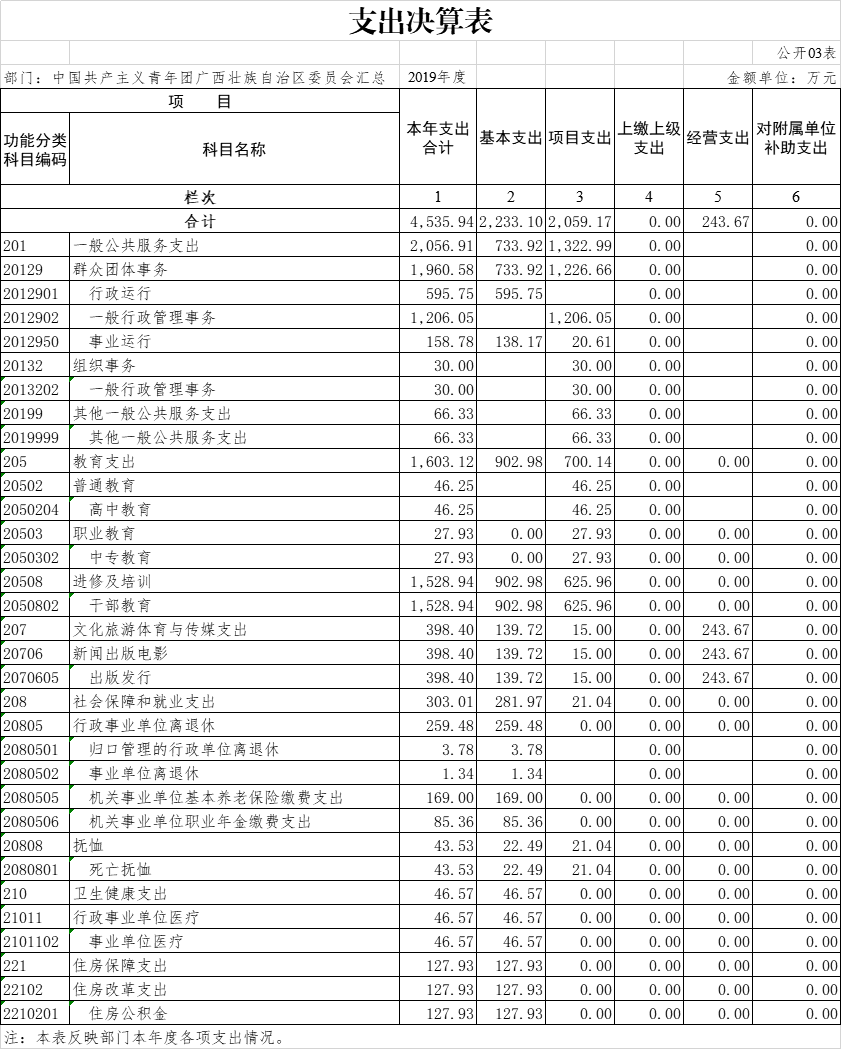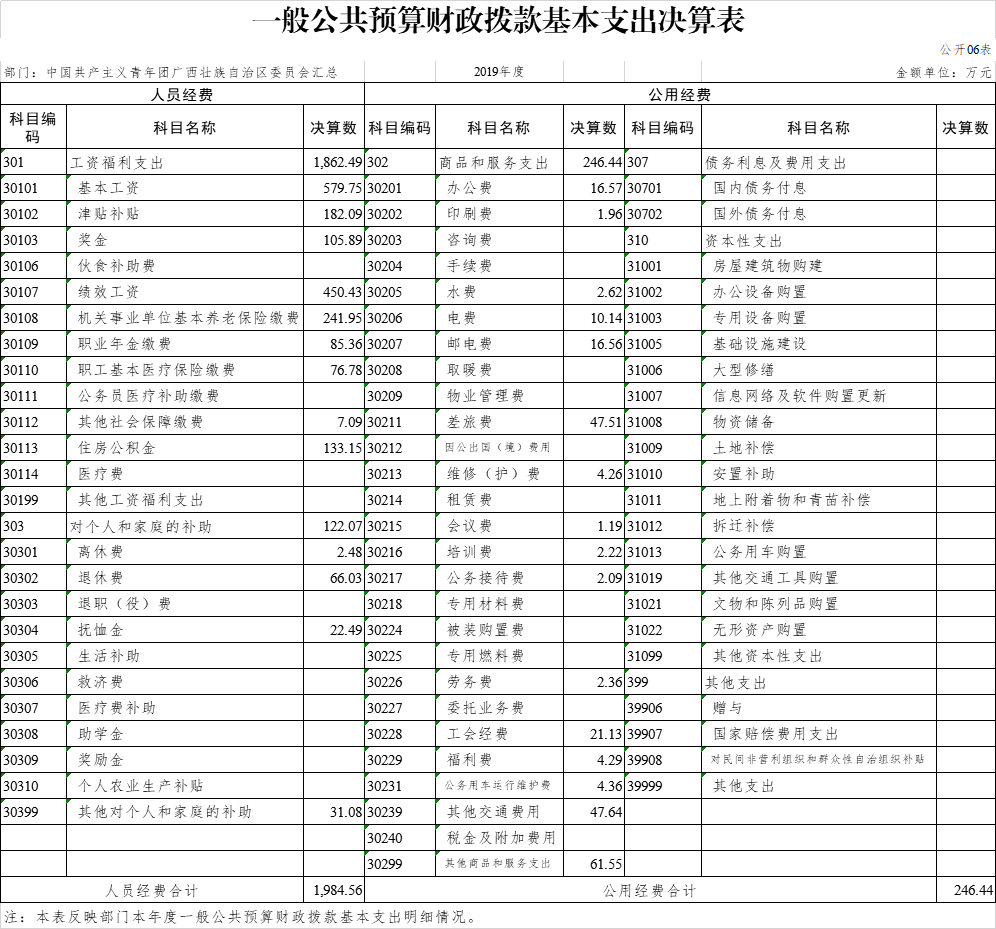 此部分另附表格。详见附件《中国共产主义青年团广西壮族自治区委员会2019年度部门决算公开附表》