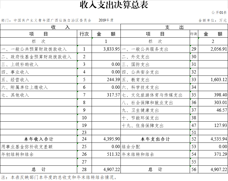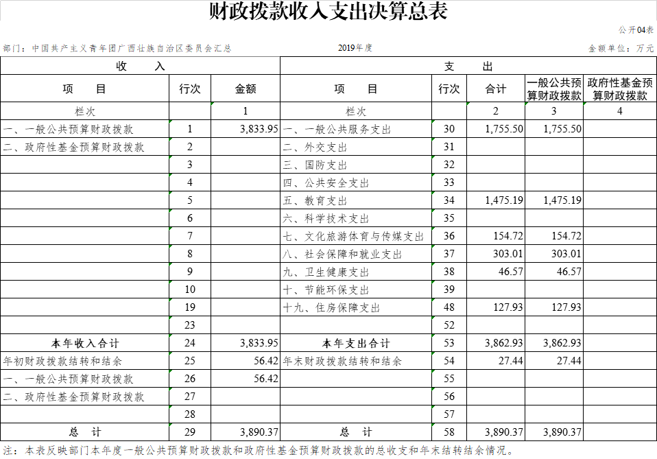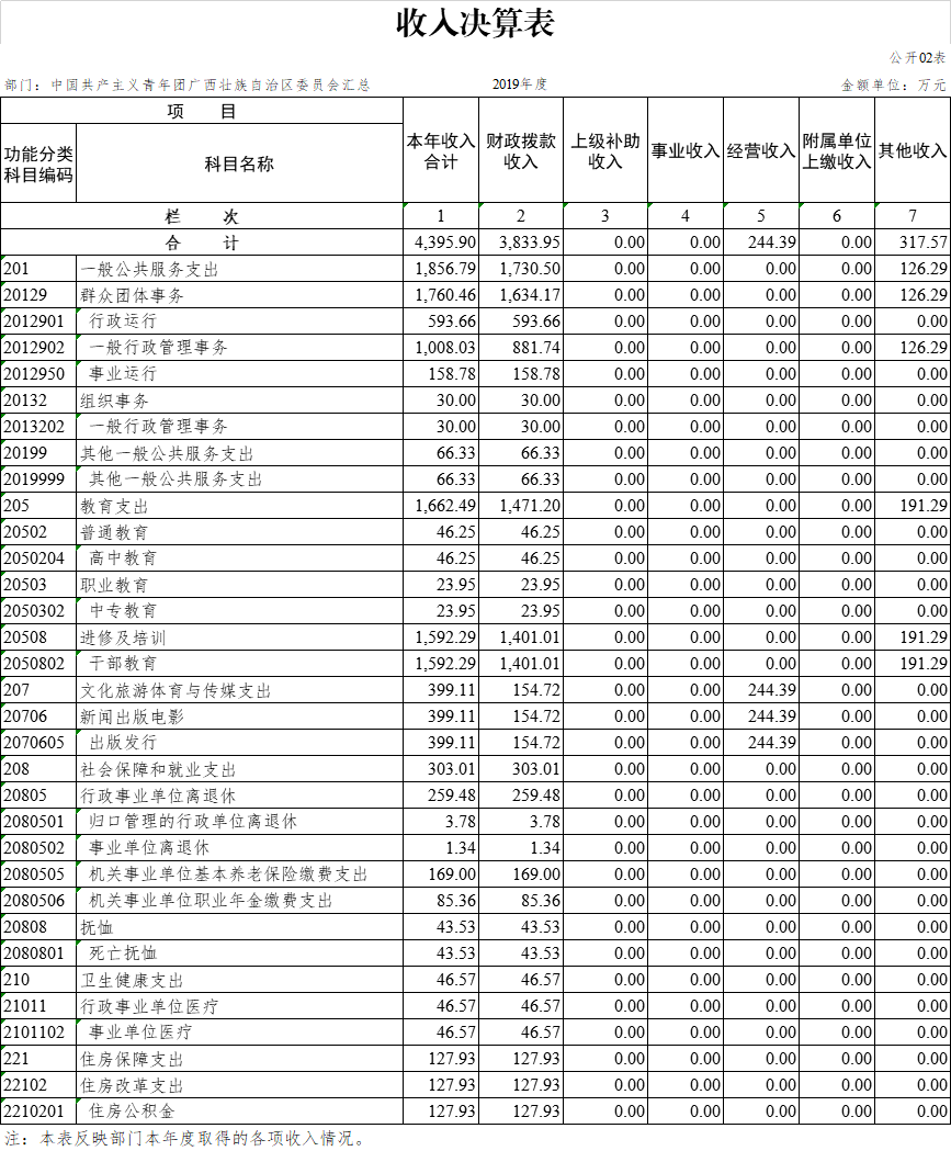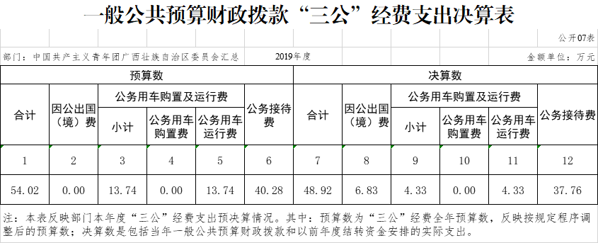 第二部分:中国共产主义青年团广西壮族自治区委员会2019年度部门决算报表