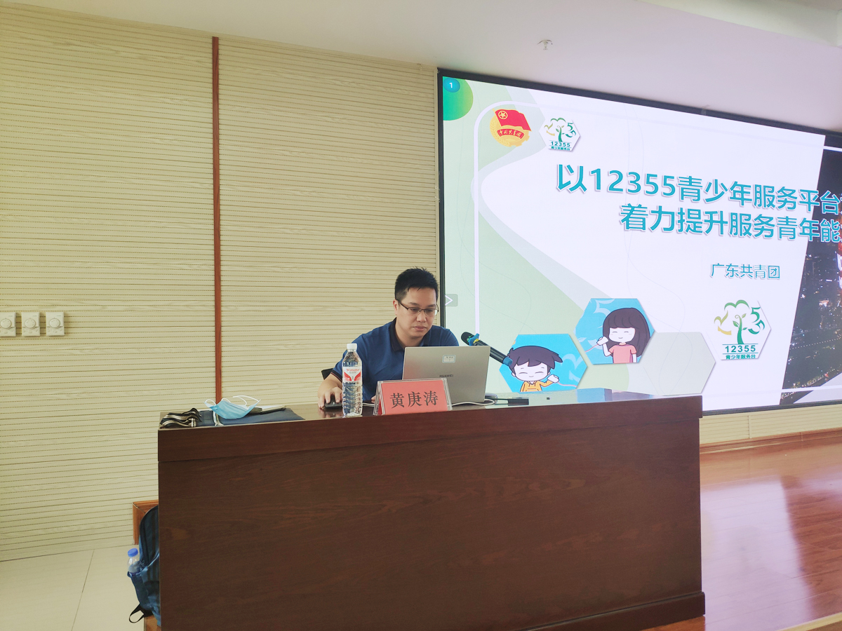 12355青少年服务台建设工作的水平高低,在一定程度上反映了共青团服务青少年的能力,广东共青团的工作一直走在全国前列,12355青少年服务台建设工作更是得到了团中央的高度肯定。为进一步学习借鉴发达地区的先进经验,探索打造线上线下多渠道的青少年服务方式,团区委邀请共青团广东省委权益与社会工作部副部长黄庚涛围绕“以12355青少年服务平台为载体,着力提升服务青年能力”作专题讲座,对广东共青团在开展12355青少年综合服务台建设工作方面的先进经验进行了交流。
