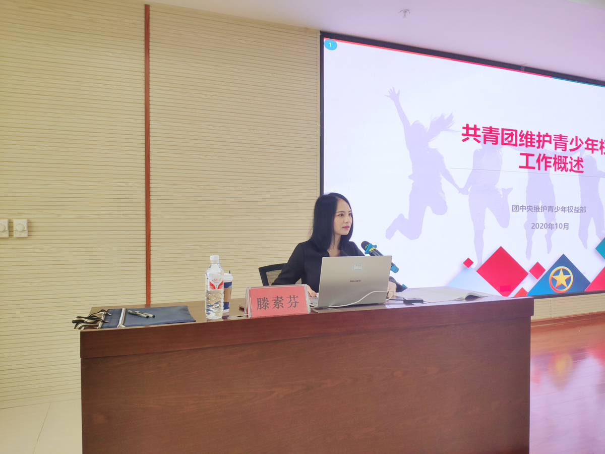 本次培训班得到了团中央的高度重视,团中央权益部协商代言处滕素芬处长围绕“共青团维护青少年权益工作概述”这一主题,用通俗易懂、理论结合实际的授课方式,对权益工作的历史变革及下一步的工作重点进行了介绍,为更好的谋划和开展我区的权益工作指明了方向。