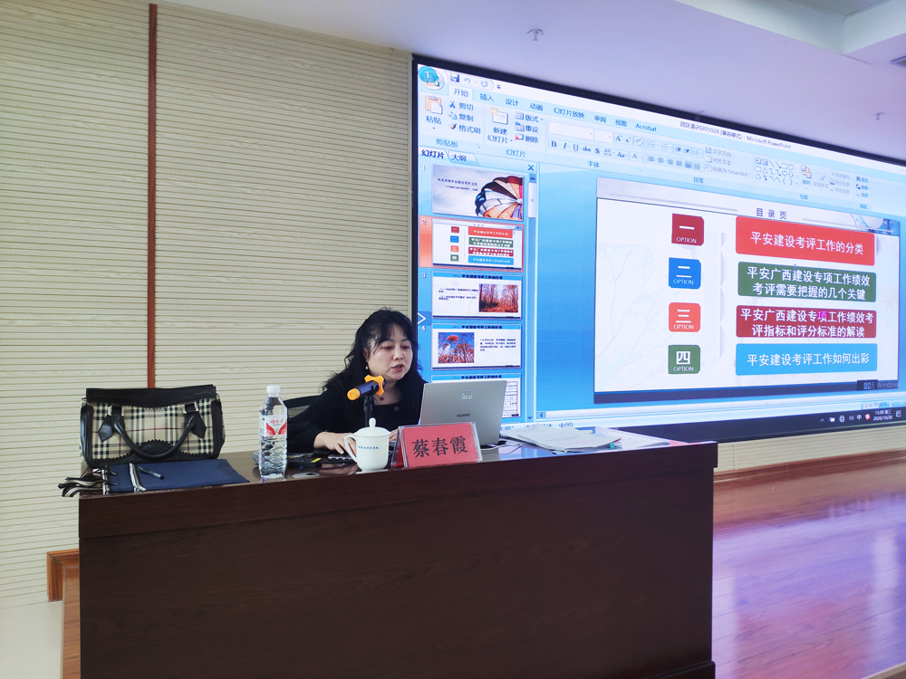 (自治区党委政法委平安建设指导处四级调研员蔡春霞给学员授课)