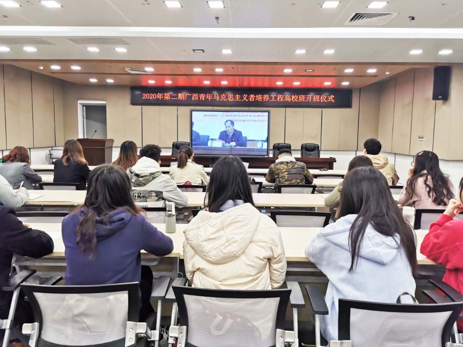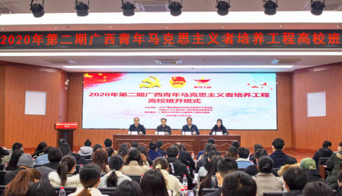 12月26日上午,2020年第二期广西青年马克思主义者培养工程高校班在青年马克思主义者培养工程全国研究培训基地(广西师范大学)开班。共青团广西区委副书记廖长友、广西师范大学党委副书记旷永青和桂林片区12所高校的113名学员共同在现场参加开班式,来自其余62所高校的289名学员分别集中在本校通过同步观看网络直播的形式参加了开班式。