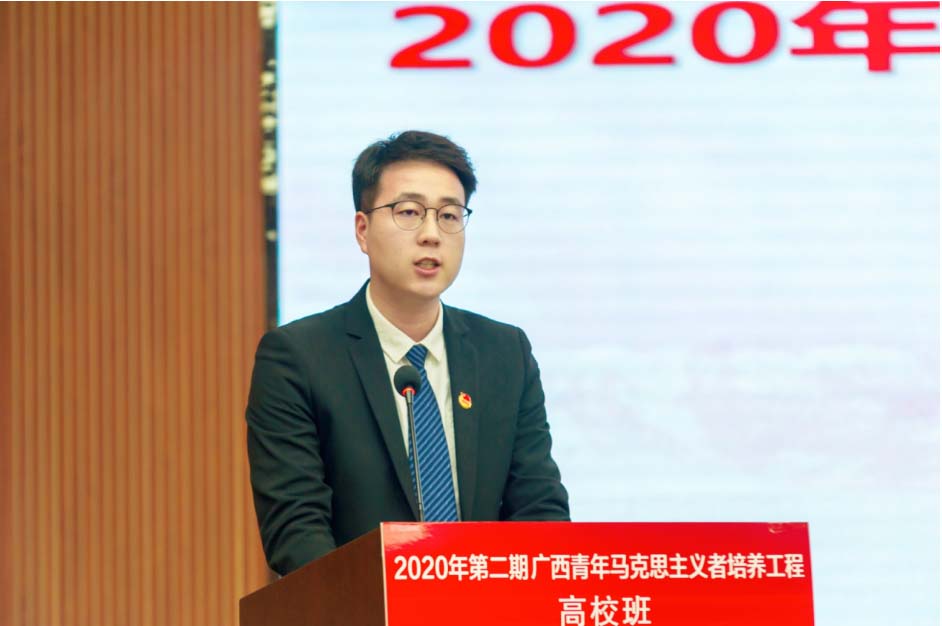 开班式后,廖长友副书记为2020年第二期广西青年马克思主义者培养工程高校班全体学员进行了党的十九届五中全会精神宣讲专题辅导报告。