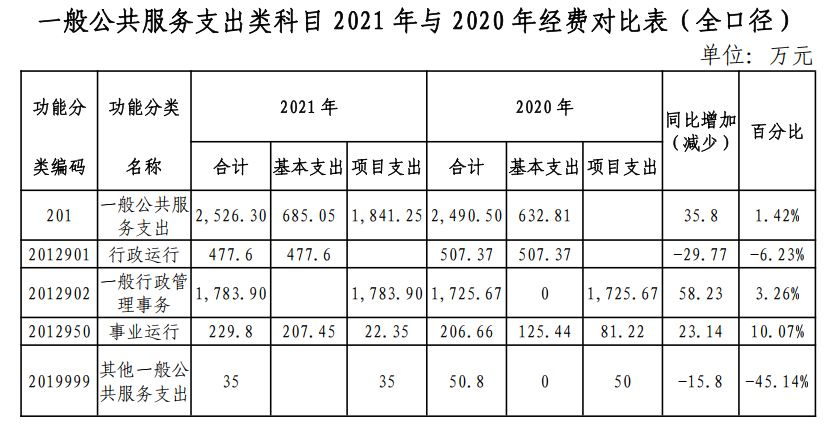 (1)一般公共服务支出类科目2526.3万元,占支出总预算40.88%,同比增加35.8万元,增长1.44%,增长的主要原因是人员经费的增加。