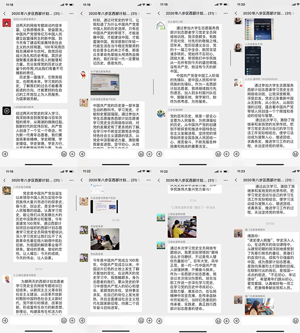 为认真学习贯彻习近平总书记在党史学习教育动员大会上的重要讲话精神,做好西部计划志愿者党史学习教育,引导广大西部计划志愿者厚植爱党、爱国、爱社会主义的情感,在广西项目办的指导下,八步区西部计划项目办于2021年3月27日至28日组织全体在岗西部计划志愿者参加了全国项目办开设的党史学习教育网络专题培训班。