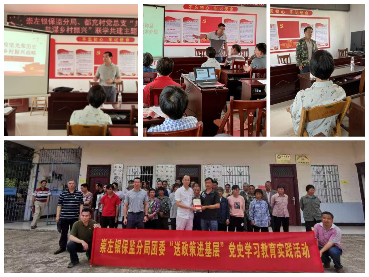 紧扣“我为群众办实事”主题,由党委成员带领青年干部到驻点帮扶村开展“送政策进基层”党史学习教育实践活动。讲述“回望脱贫攻坚光荣历史 接续推动乡村振兴战略”主题党课,并由脱贫农户代表分享个人和家庭的脱贫经历和感受,用声情并茂的个人故事引发情感共鸣。向帮扶村党员群众赠送党史书籍丰富精神生活,向村民普及金融知识,帮助准确了解惠农富农金融政策,邀请专家为村民讲授坚果、糖料蔗种植技术,增强了人民群众对金融助力乡村振兴的获得感和幸福感。