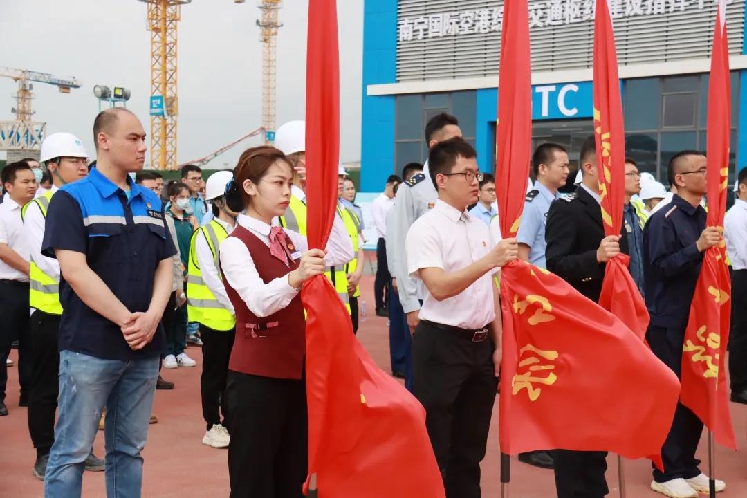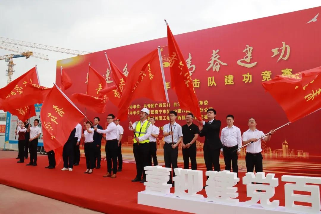 4月21日,由共青团广西区委、自治区发展改革委主办,共青团南宁市委、中建八局广西分公司、区直机关团工委、广西机场集团团委承办,广西重大项目青年突击队建功竞赛在南宁国际空港综合交通枢纽项目基地正式启动。来自全区各行业单位约100支青年突击队员代表参加活动。
