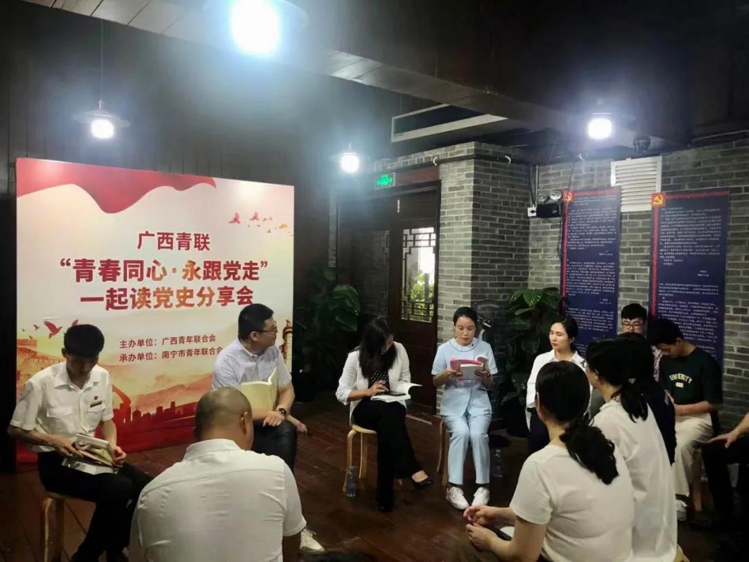 4月23日下午,在第 26 个“世界读书日”到来之际,由广西青年联合会主办,南宁市青年联合会承办的“青春同心·永跟党走”一起读党史分享会在南宁市邓颖超纪念馆举行。广西青联组织各级青联委员和社会组织青年代表等20余人参加了此次活动。