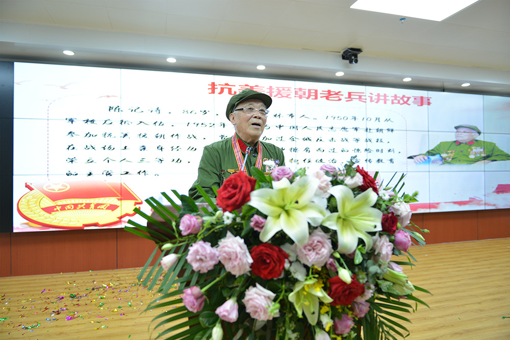 曾参加抗美援朝作战的86岁老人陈记诗为大家上团课。陈老用朴实的语言、真挚的情感讲述了参加金城反击战等战役的难忘经历,分享战场上与死神擦肩过的惊险时刻。讲到动情之处不禁潸然泪下,台下听众一次次报以热烈的掌声,对陈老舍生忘死、英勇作战的革命大无畏精神表示无比敬重。
