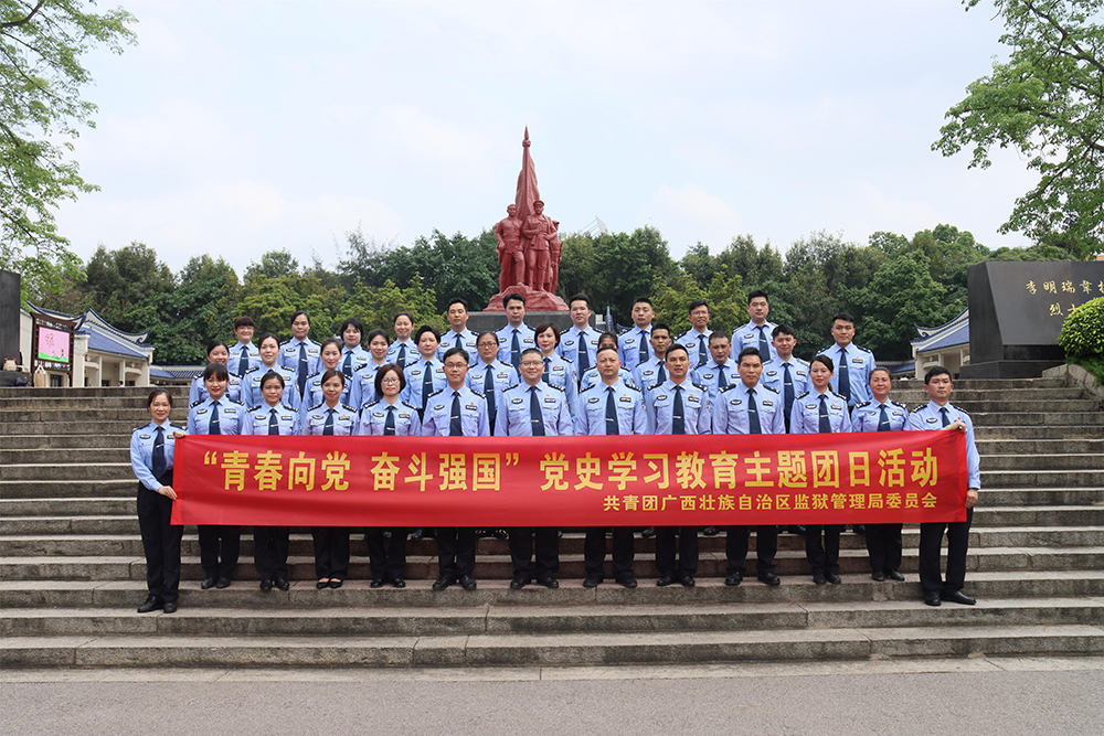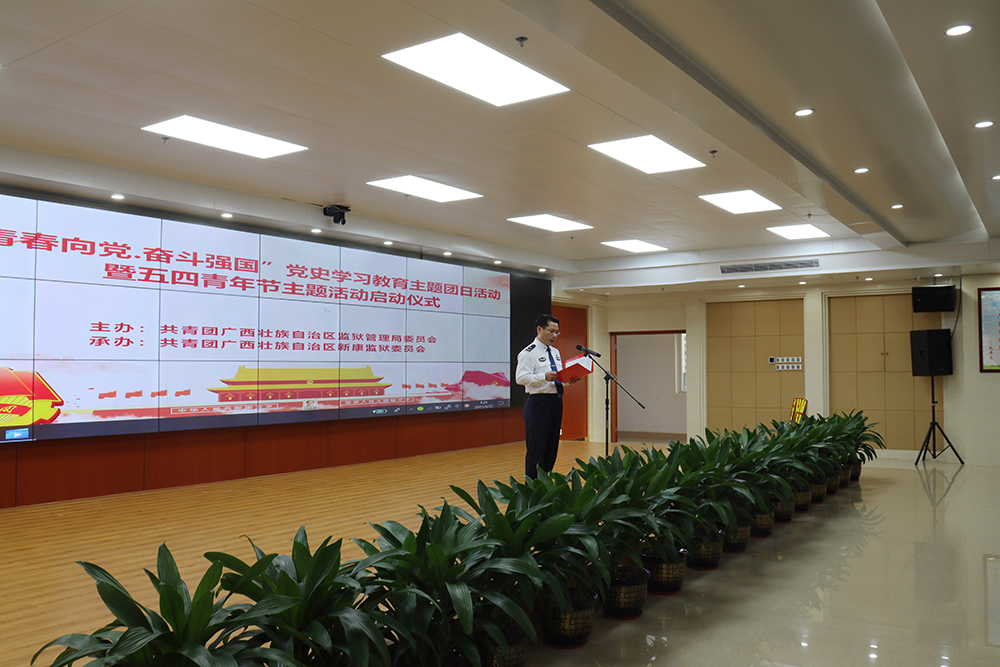 为纪念中国共产党建党100周年和五四运动102周年,深入贯彻落实共青团中央“学党史、强信念、跟党走”学习教育工作部署,引导广大团员厚植爱党、爱国、爱社会主义的浓厚情感,4月22日,全区监狱系统“青春向党 奋斗强国”党史学习教育主题团日活动暨五四青年节主题活动启动仪式在广西新康监狱举行。自治区监狱管理局党委委员、副政委赖伟容,局后勤保障中心主任兼团委书记农文年,新康监狱党委书记、政委李建安,新康监狱党委副书记、监狱长唐全胜,局团委委员以及监狱团员青年共近90人参加了活动。