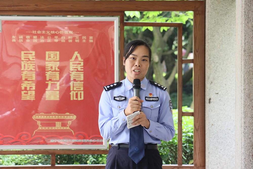 钦州监狱 蒋敏:“历史是一面镜子,也是一盏明灯。100年前一批青年才俊用智慧和鲜血开创了红色历史,今天年青的我们,同样有责任接过这一棒,跟随着党的脚步,坚定地前行,不忘入警、入党时的初心和使命。”