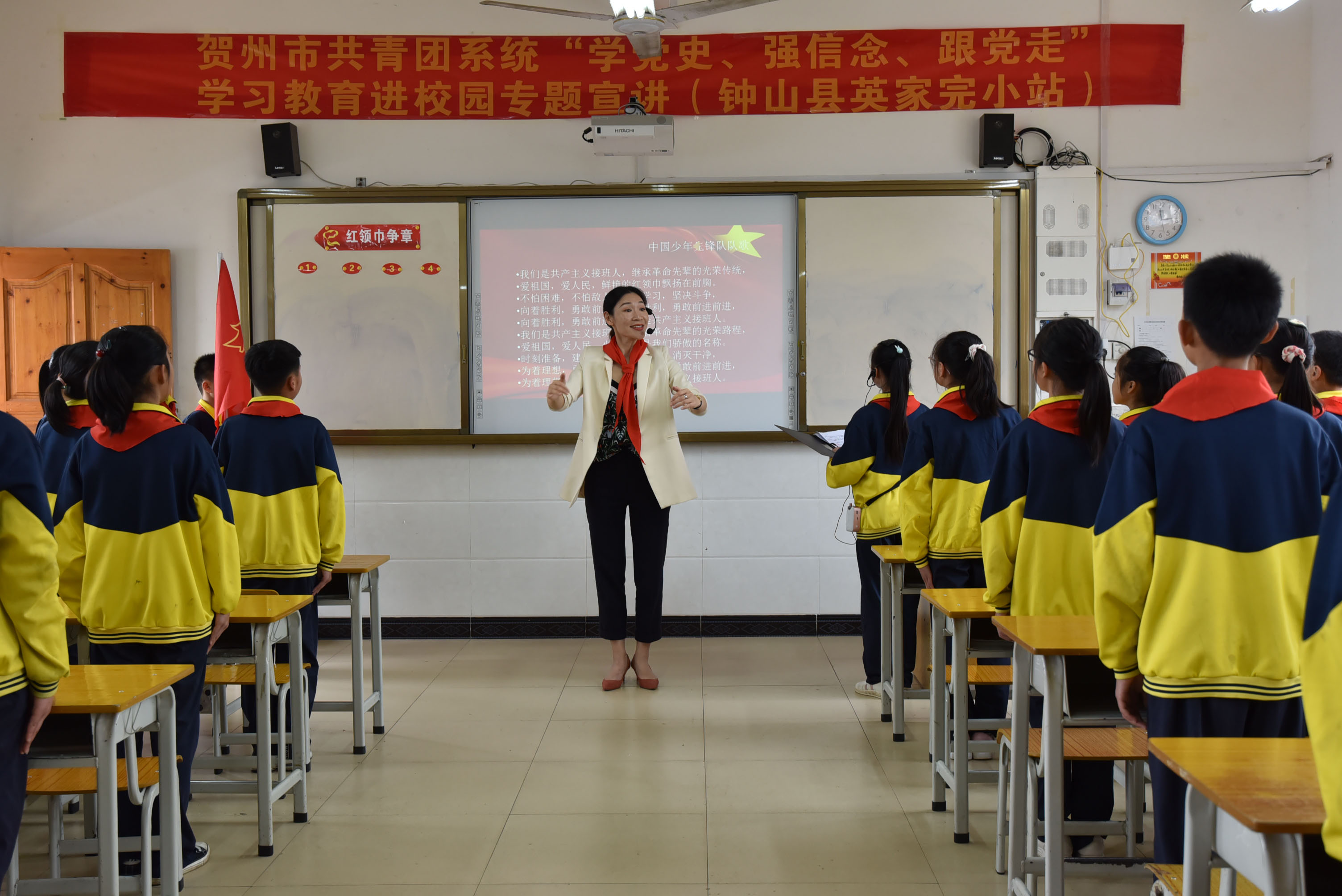 4月25日下午,由共青团贺州市委、贺州市青年联合会主办的“青春同心 永跟党走”青联委员党史大讲堂活动分别在贺州市钟山县英家完小、英家中学、英家村红色戏台、王家纪故居等地开展。贺州市各级青联委员和团干部、少数民族青少年、少先队员、社会组织青年、英家村党员干部群众代表等100余人参加了此次活动。