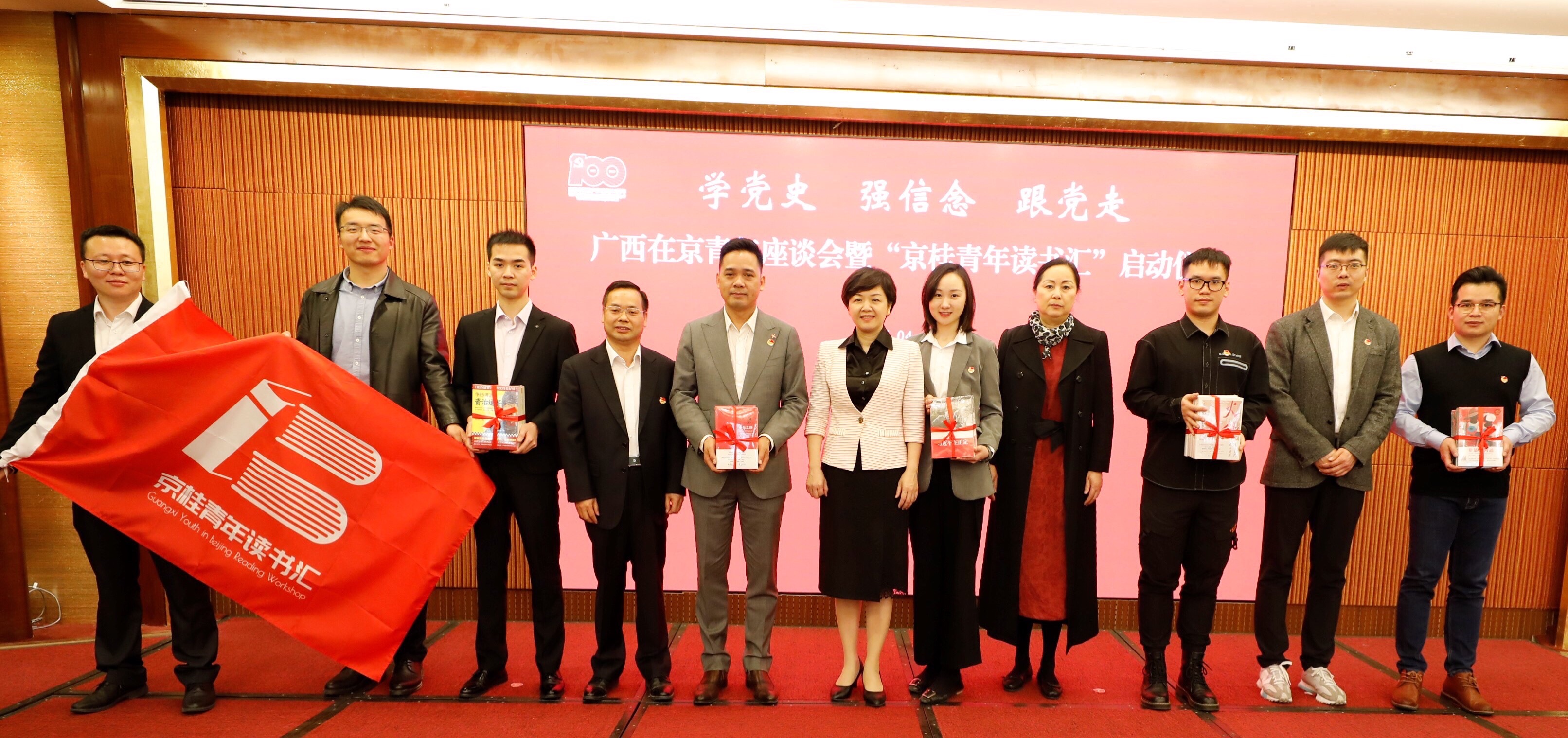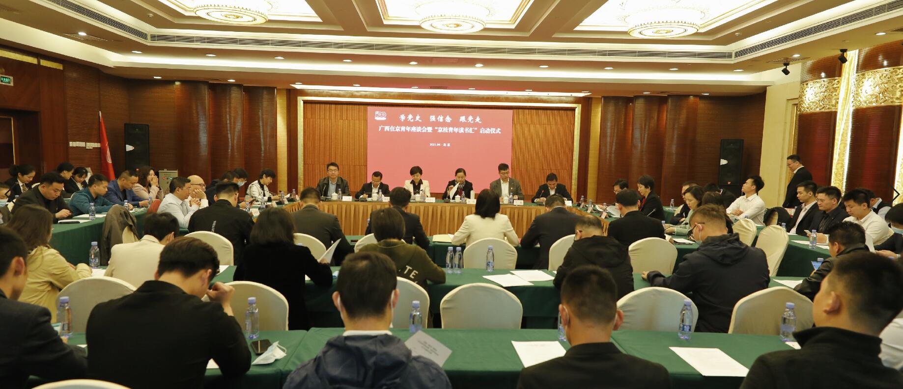 4月23日是世界读书日,广西驻京机构党委在广西大厦召开“学党史、强信念、跟党走”广西在京青年座谈会暨京桂青年读书汇项目启动仪式,传达学习习近平总书记在清华大学考察时的重要讲话精神。来自广西驻京办机关、北京广西大厦、北京广西企业商会、北京广西博士生联谊会、北京广西大学生联谊会和在京务工青年群体等6名青年代表分别作了学习心得交流发言。