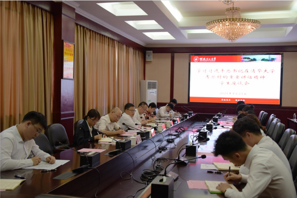 为深入学习领会习近平总书记在清华大学考察时的重要讲话精神,进一步引领广大青年学生肩负历史使命,坚定前进信心,4月23日下午,桂林理工大学在屏风校区教8栋三楼会议室召开学习习近平总书记在清华大学考察时的重要讲话精神座谈会,桂林理工大学党委副书记吴志强出席座谈会,党办(校办)、宣传部、学工部(处)、团委相关同志及该校第十期青马班学员代表、校级学生骨干代表、学生党员代表参加座谈会。