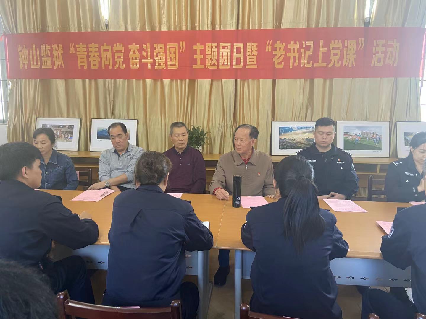 在五四青年节来临之际,4月29日,钟山监狱开展了“青春向党 奋斗强国”主题团日暨“老书记上党课”活动,监狱退休警察代表、青年警察代表共30余人参加活动。