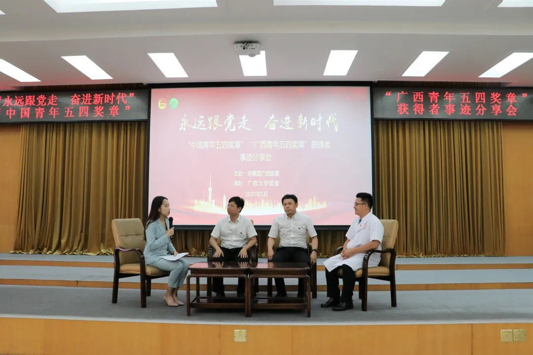 为集中展示新时代青年听党指挥、矢志奋斗的精神风貌,激励广大青年心怀“国之大者”,奋勇建功立业,以优异成绩庆祝党的百年华诞。5月14日下午,由共青团广西区委主办、共青团广西大学委员会承办的“永远跟党走 奋进新时代”——“中国青年五四奖章”、“广西青年五四奖章”获得者事迹分享会在广西大学举办,并同步进行线上网络直播。