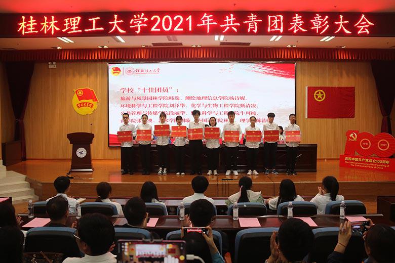 随后,与会领导分别为荣获2020年度全国和广西“两红两优”、桂林市“两红两优”、学校共青团“十佳”系列先进集体代表和先进个人、2020年在各类创新创业及校园文化活动中获奖的先进集体和先进个人颁奖。