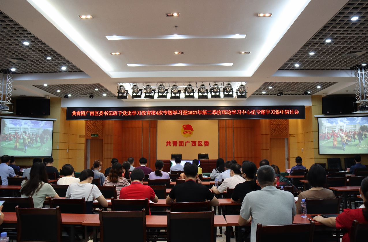 6月23日,共青团广西区委书记班子理论学习中心组召开“学史增信,坚定理想信念”专题学习研讨暨2021年第二季度理论学习中心组专题学习会。共青团广西区委副书记廖长友主持会议,中心组成员参加学习并发言,机关各部室、直属单位主要负责人列席学习会。