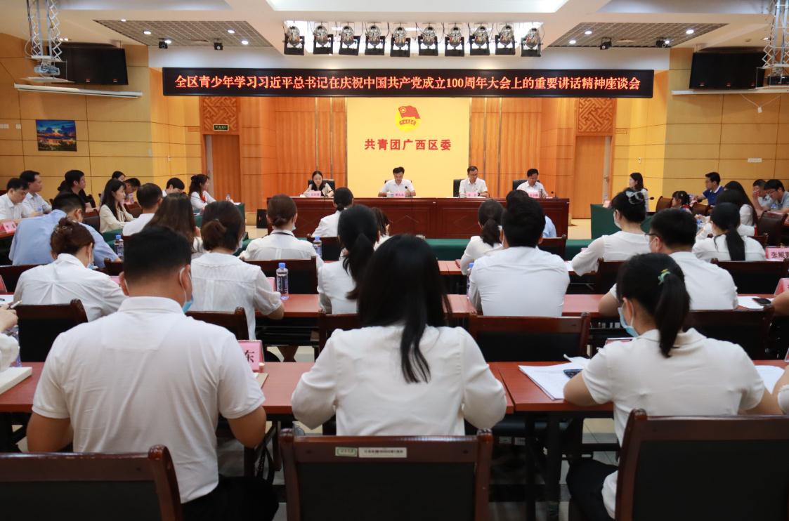 7月2日,共青团广西区委举办全区青少年学习习近平总书记在庆祝中国共产党成立100周年大会上的重要讲话精神座谈会,深入学习习近平总书记重要讲话精神。