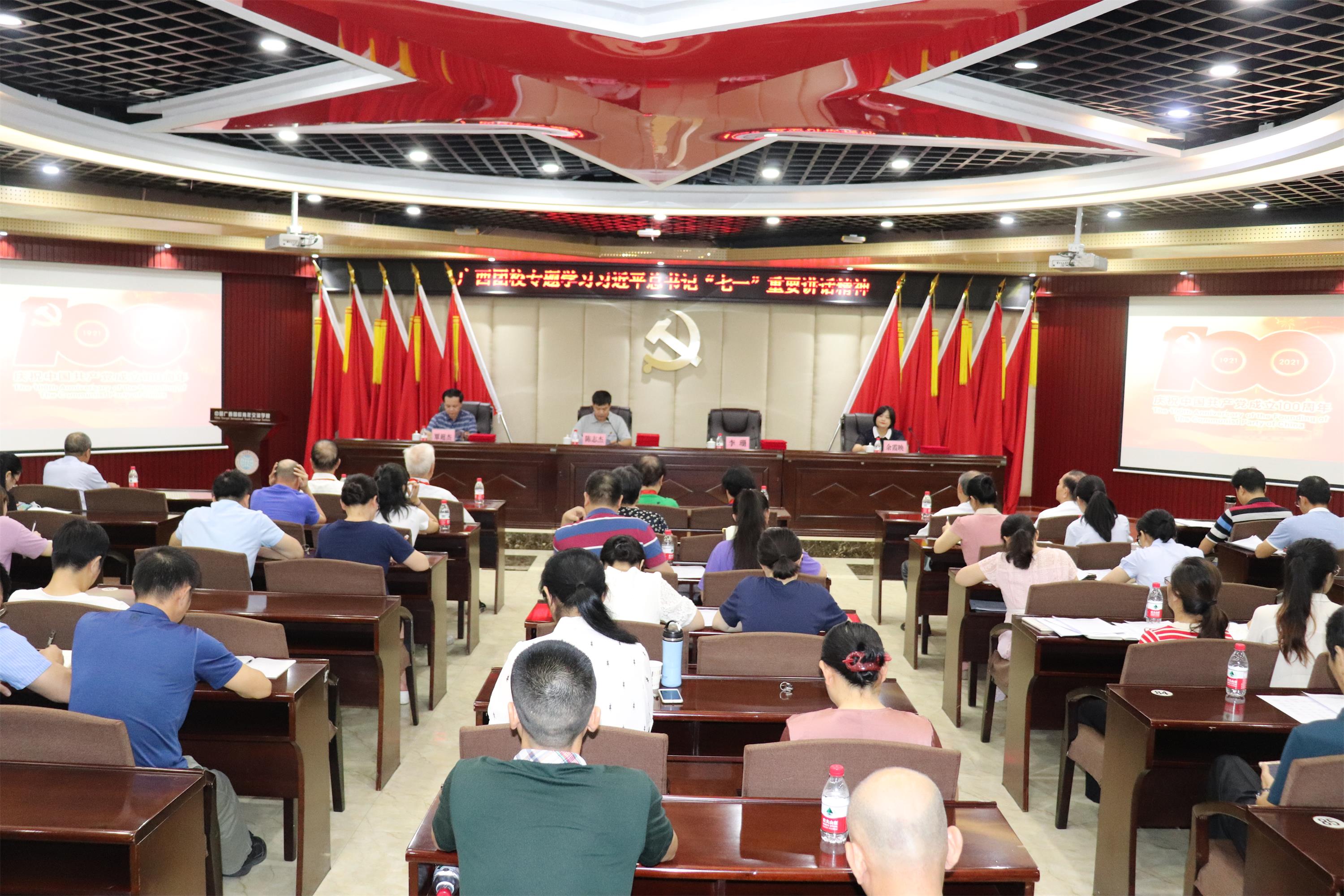 7月6日,我校召开党委理论学习中心组学习(扩大)会议,认真学习习近平总书记在庆祝中国共产党成立100周年大会上的重要讲话精神,结合实际工作开展交流研讨。学校党委书记、常务副校长陈志杰主持会议并讲话。随后,组织召开学校全体教职工会议,传达学习中共中央办公厅、共青团中央、自治区关于学习贯彻习近平总书记在庆祝中国共产党成立100周年大会上的重要讲话精神的文件精神和会议精神。