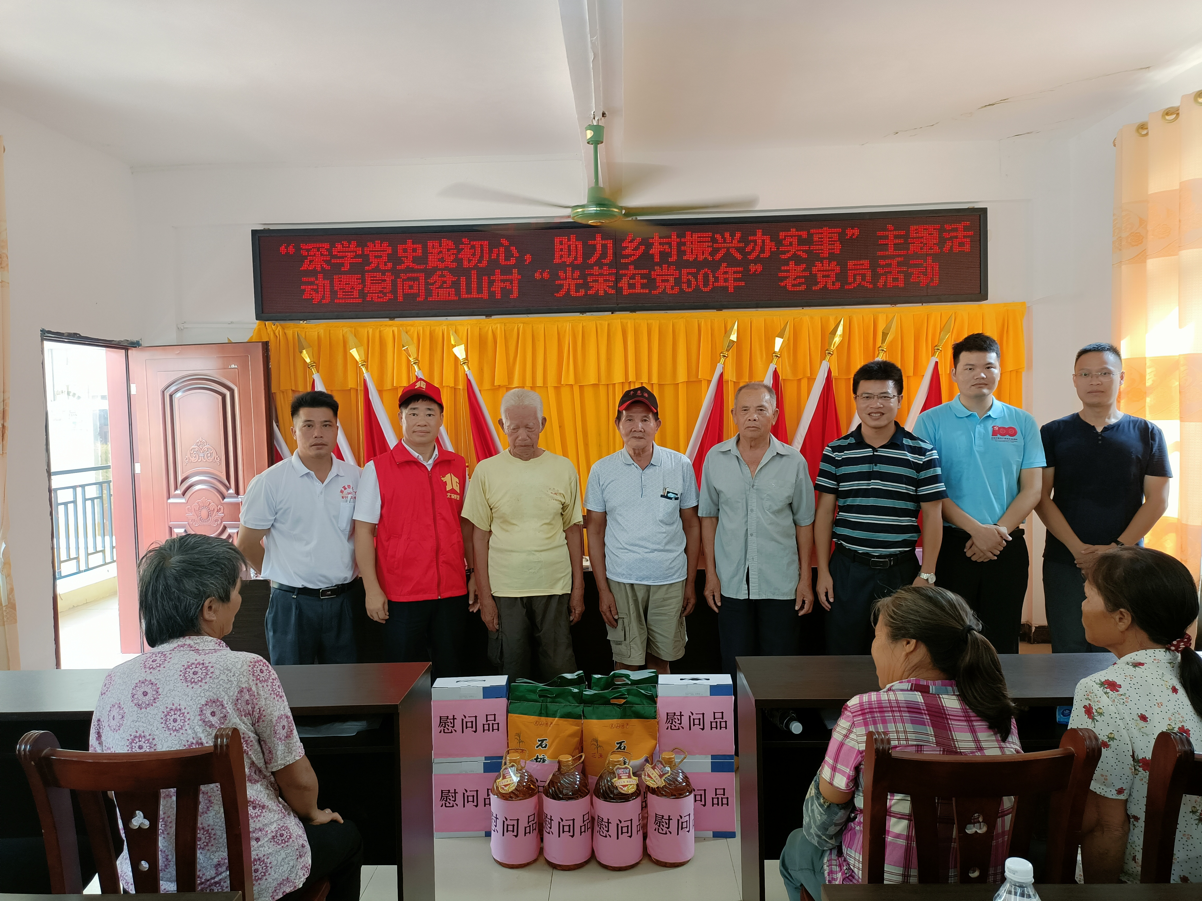 为加强自身“造血能力”,从最困难的群众入手,向盆山村建档立卡户赠送肥料70包,巩固拓展了脱贫攻坚成果;从最现实的利益出发,为85名适龄妇女赠送了保额为4250万元的“两癌”保险,给予“半边天”贴心关爱;从最突出的问题抓起,针对群众呼声强烈的席关塘、十冬塘两处共8栋沿路高危泥房进行了清拆,帮助当地村屯群众解除了身边的气象次生灾害隐患;向最老牌的党员致敬,对陈光河等4名50年以上党龄的老党员进行了慰问,现场赠送大米、花生油等1500元物资,传达了党和政府对他们的关心关怀。