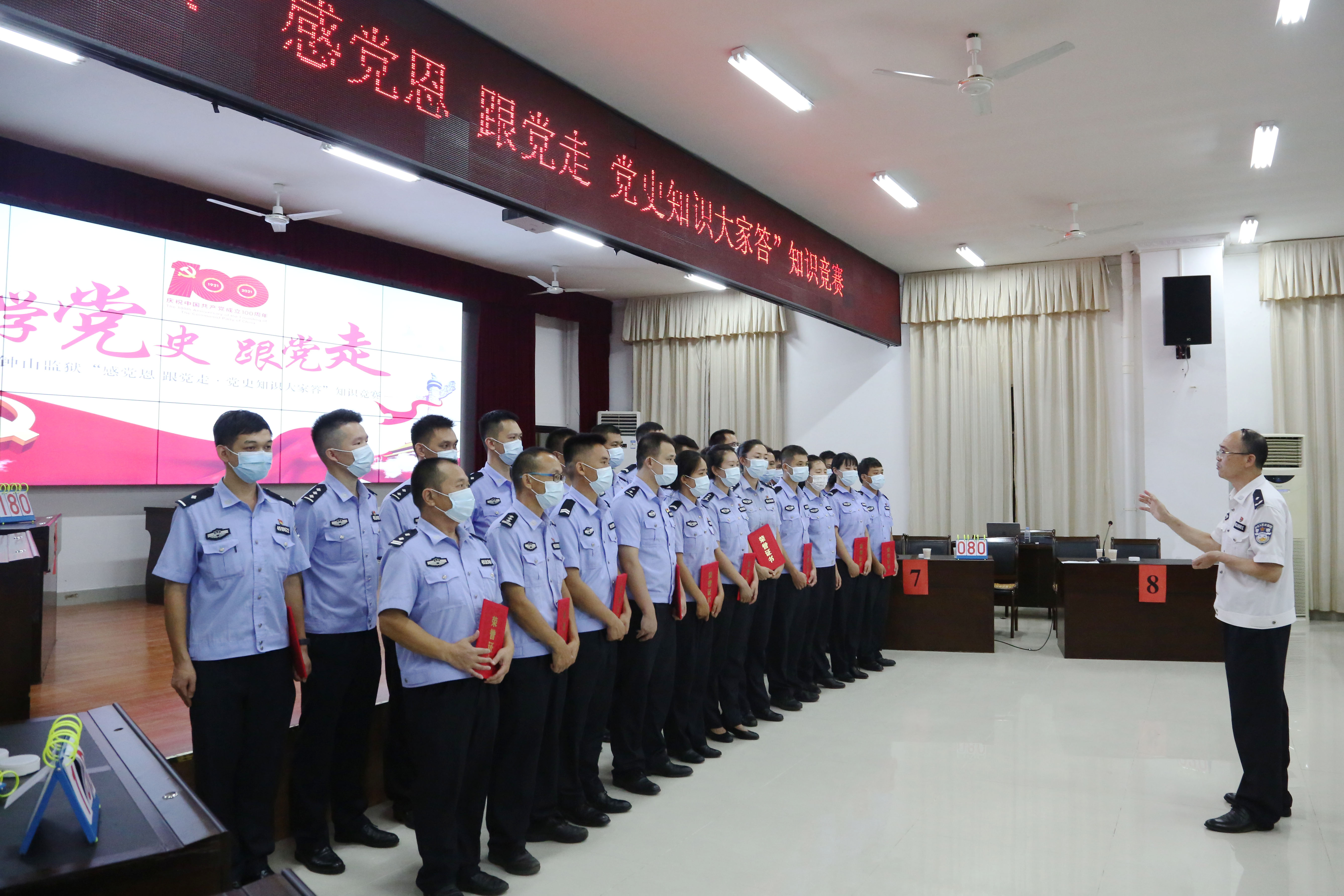 8月5日晚,钟山监狱“感党恩 跟党走·党史知识大家答”知识竞赛在办公楼六楼会议室拉开帷幕,进入决赛前八名的党支部共二十四名青年警察干部参加比赛。