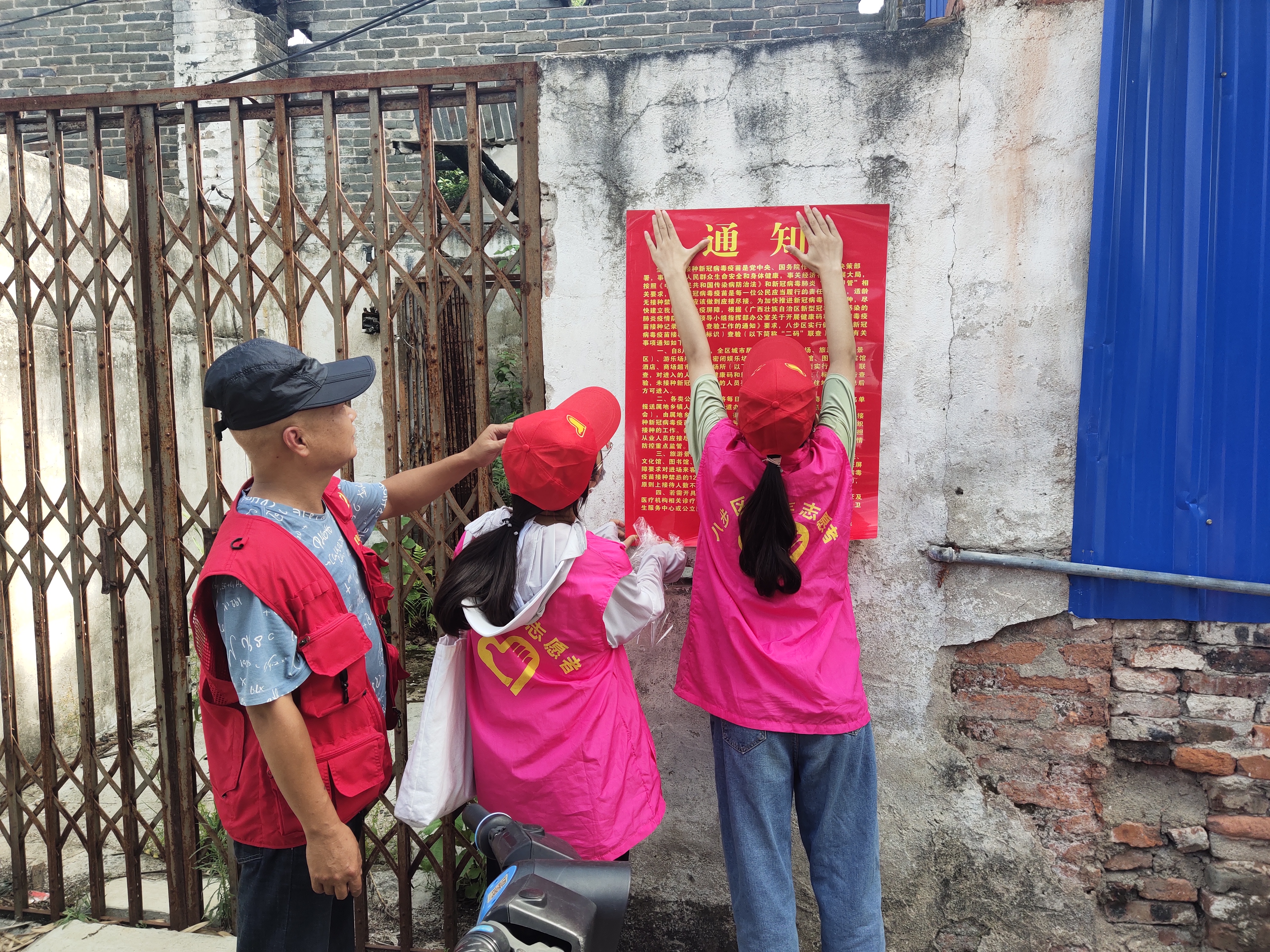 志愿者张贴宣传海报
