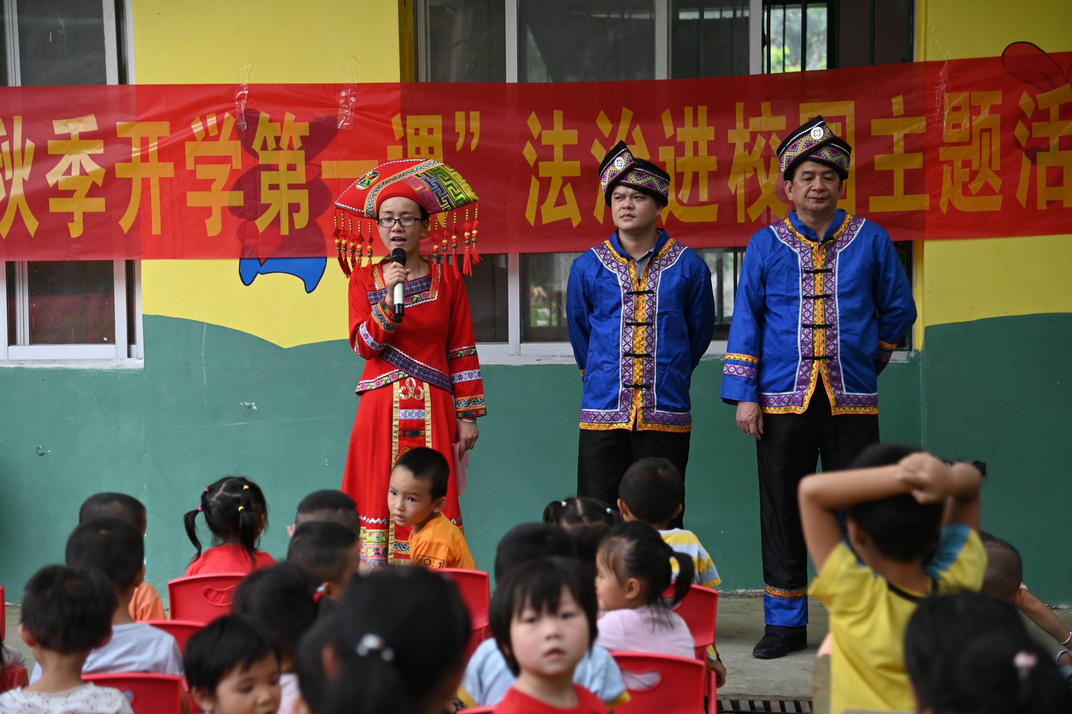 为了预防和减少未成年人犯罪,不断加强未成年人法治教育、民族团结教育,促进边境地区未成年人健康成长,9月8日,共青团大新县委员会联合大新县人民检察院、大新县妇女联合会到大新县硕龙镇岩应村完小开展2021年“秋季开学第一课”法治进校园暨民族团结进校园活动,帮助学生树立法治观念、接受法治熏陶、增强对中华民族历史文化的认同感。