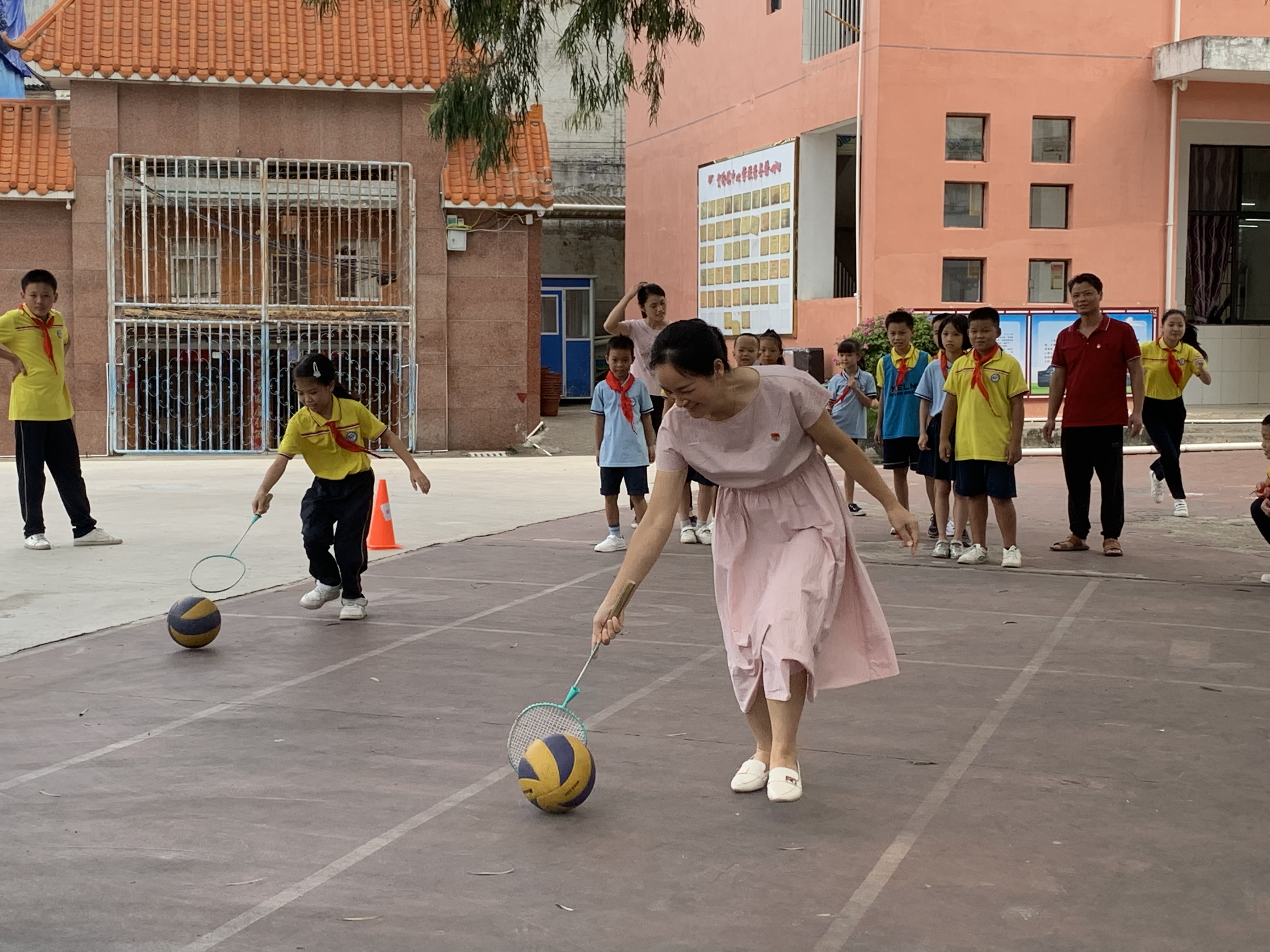 座谈会后,在学校操场组织党建联盟各成员单位携手贺街镇中心小学教师与本校留守儿童、困境儿童一起开展了抛绣球、“赶小猪”、掷球入篮等游戏,增加了党员和留守儿童、困境儿童的互动交流,让孩子们在活动中学会团结与鼓励,收获了爱和温暖。