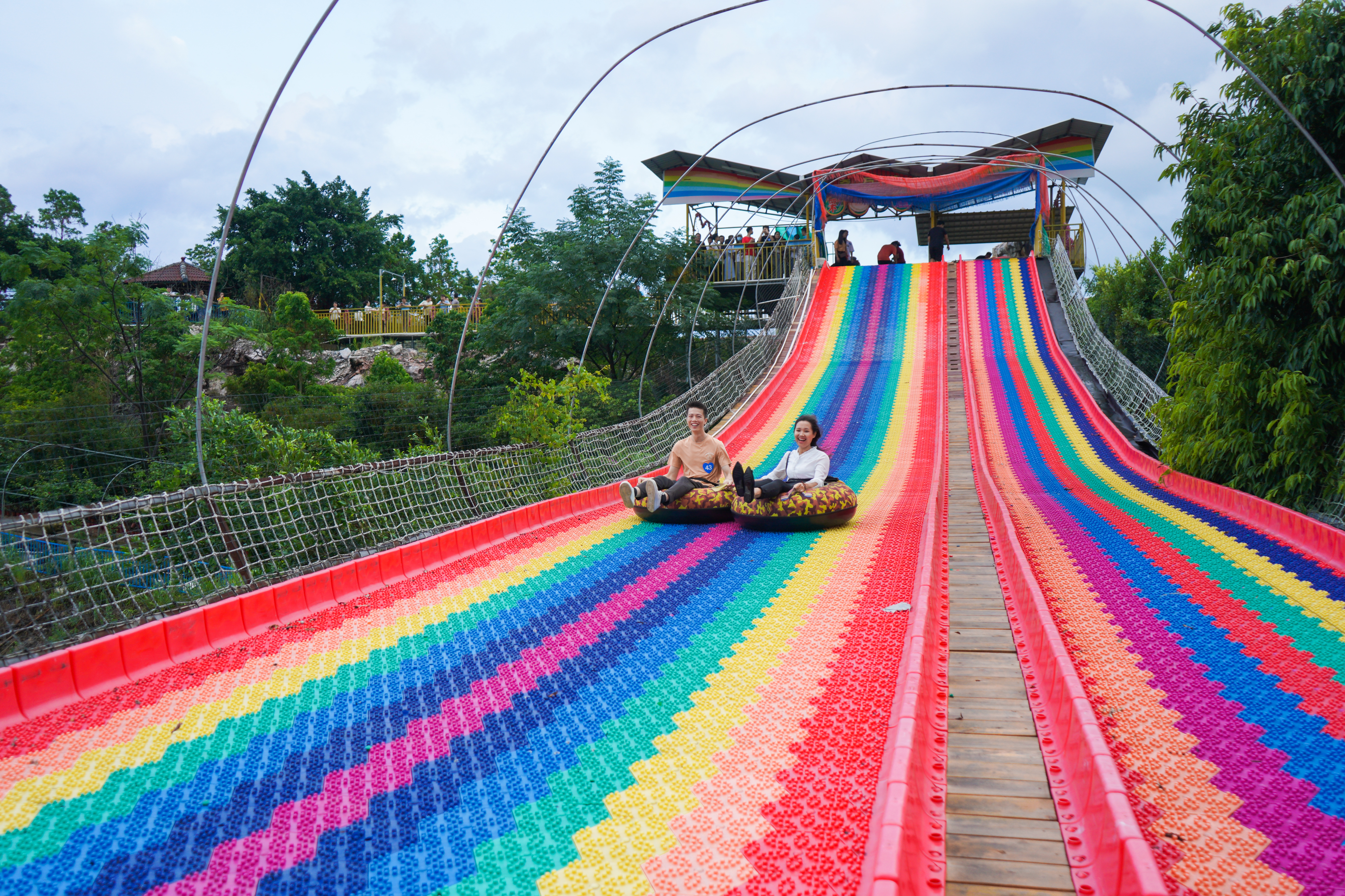 活动现场,“桃花朵朵开”“爱的背靠背”“筷子传纸杯”等“破冰游戏”如火如荼开展,把活动推向一个又一个高潮,男女青年团结合作,默契配合,帮助彼此放松心情,增进了解,擦出火花。游戏后,起初的拘谨逐渐被热闹所取代,青年们携手来到彩虹桥滑梯处,男女青年一对一结对游玩。男青年抓紧机会对心仪女青年提出结对邀请,甜蜜加分。空山新雨后,天气晚来秋,突来暴雨带来丝丝凉意,但是青年们的心是火热的。