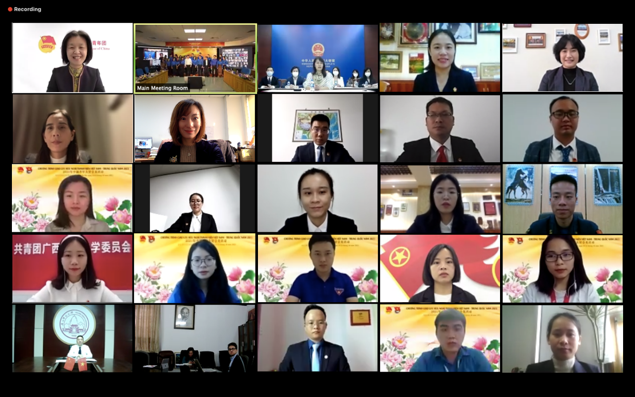 10月29—31日,由中国共青团中央和越南胡志明共青团中央共同主办的2021年中越青年友好会见活动以视频会议的形式在“云”端举办。中国共青团中央国际联络部部长董霞、越南胡志明共青团中央国际部(代)部长郑氏梅芳出席开幕式并致词,中国驻越南大使馆公使衔参赞俞海芸、共青团广西区委副书记左向蕾、越南驻中国大使馆官员、中越两国青年学者代表、广西共青团干部及各领域青年代表60余人参加活动。
