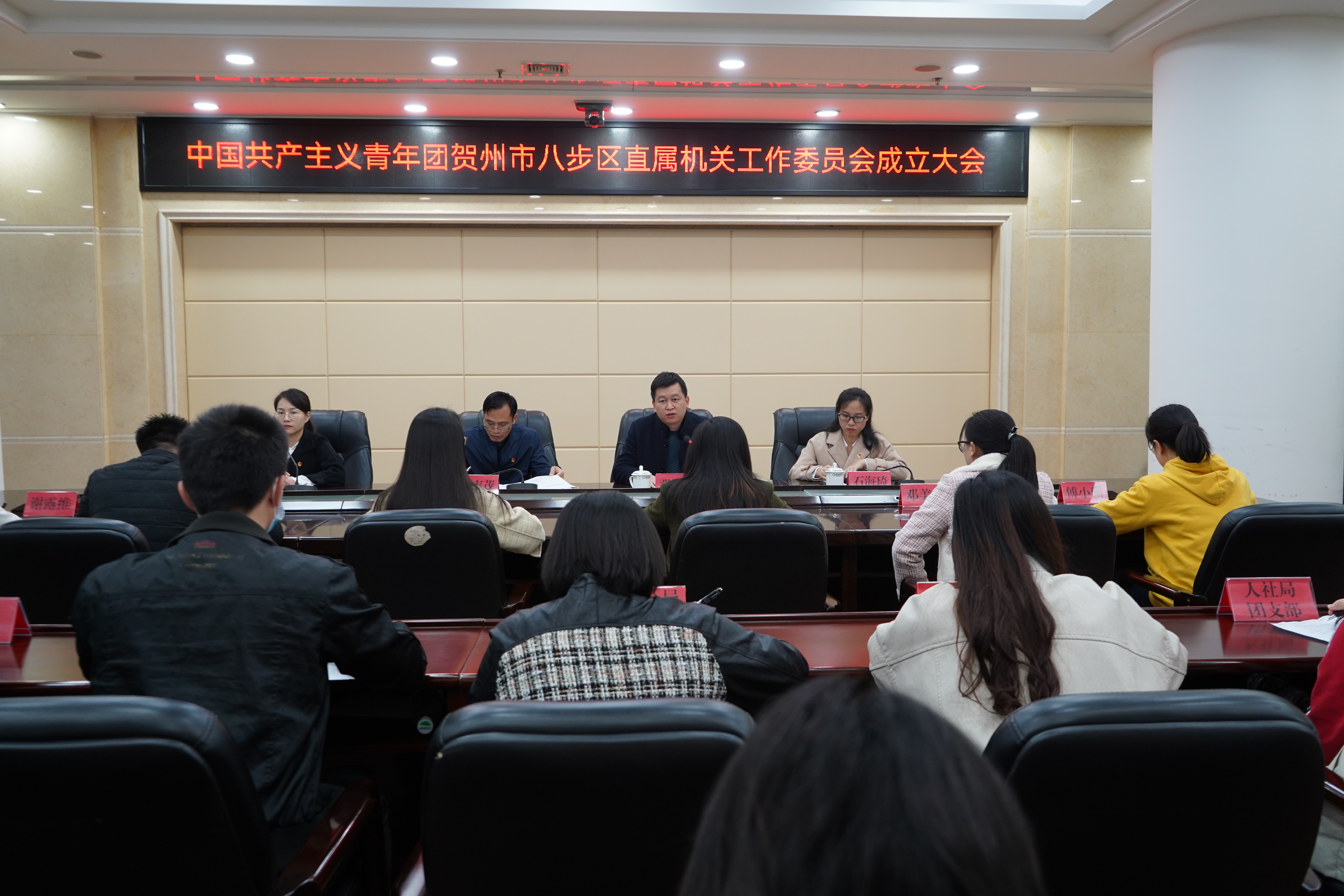 为认真落实《八步区共青团基层组织改革试点实施方案》,进一步加强区直属机关共青团工作,充分发挥共青团组织团结青年、凝聚青年、服务青年的作用,在八步区直属机关团工委(筹备组)的精心筹备下,11月8日上午共青团贺州市八步区直属机关工作委员会正式成立,团八步区委书记邓崇西、八步区委直属机关工委书记周声茂出席会议,团八步区委副书记李佳宁主持会议。参加会议的有八步区直机关团工委各委员,区直单位团组织团员青年代表。