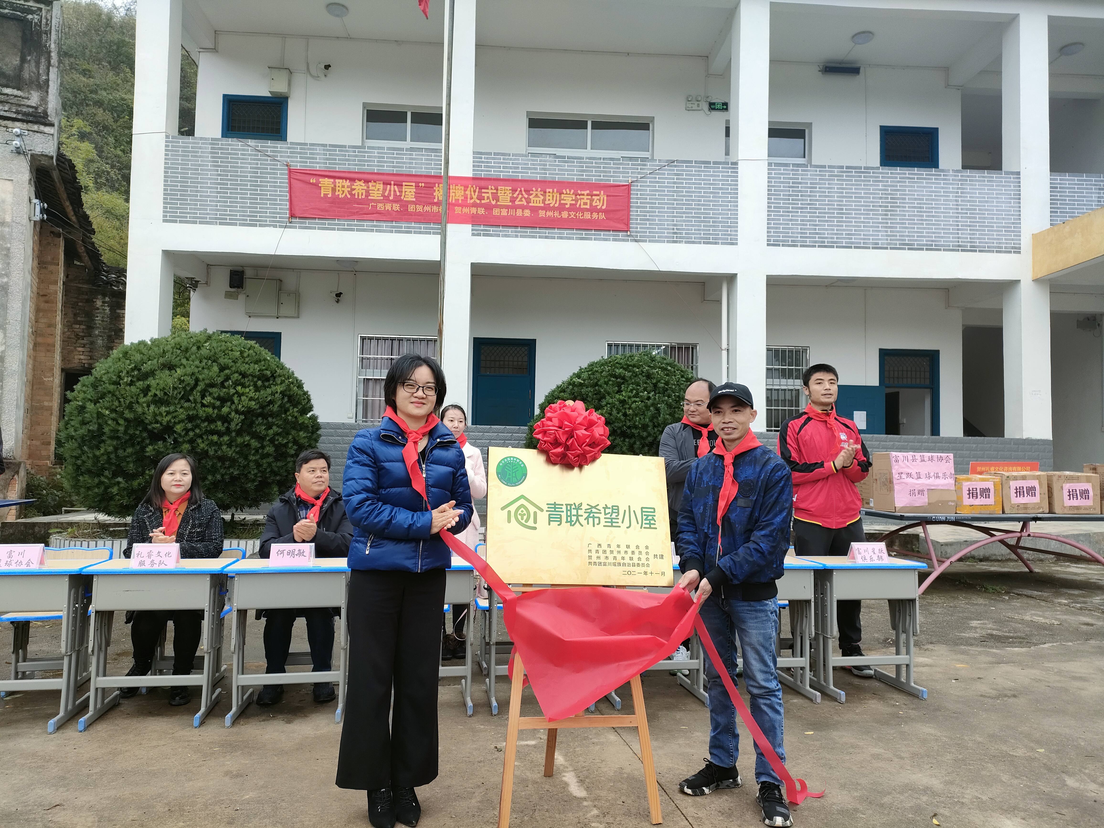 11月23日,广西壮族自治区贺州市首个“青联希望小屋”揭牌仪式及捐赠活动在富川古城镇塘贝完全小学举行。