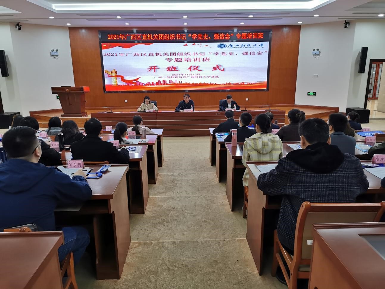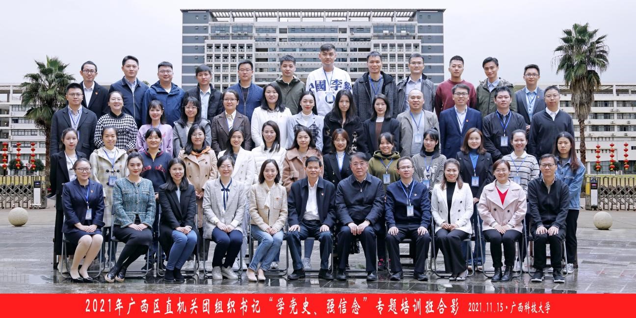 11月14日至19日,2021年广西区直机关团组织书记“学党史、强信念”专题培训班在柳州举办。此次培训由自治区党委区直机关工委主办、广西干部教育培训广西科技大学基地承办,来自区直、中直驻桂机关、企事业单位和区直院校的50余名团干部参加培训。