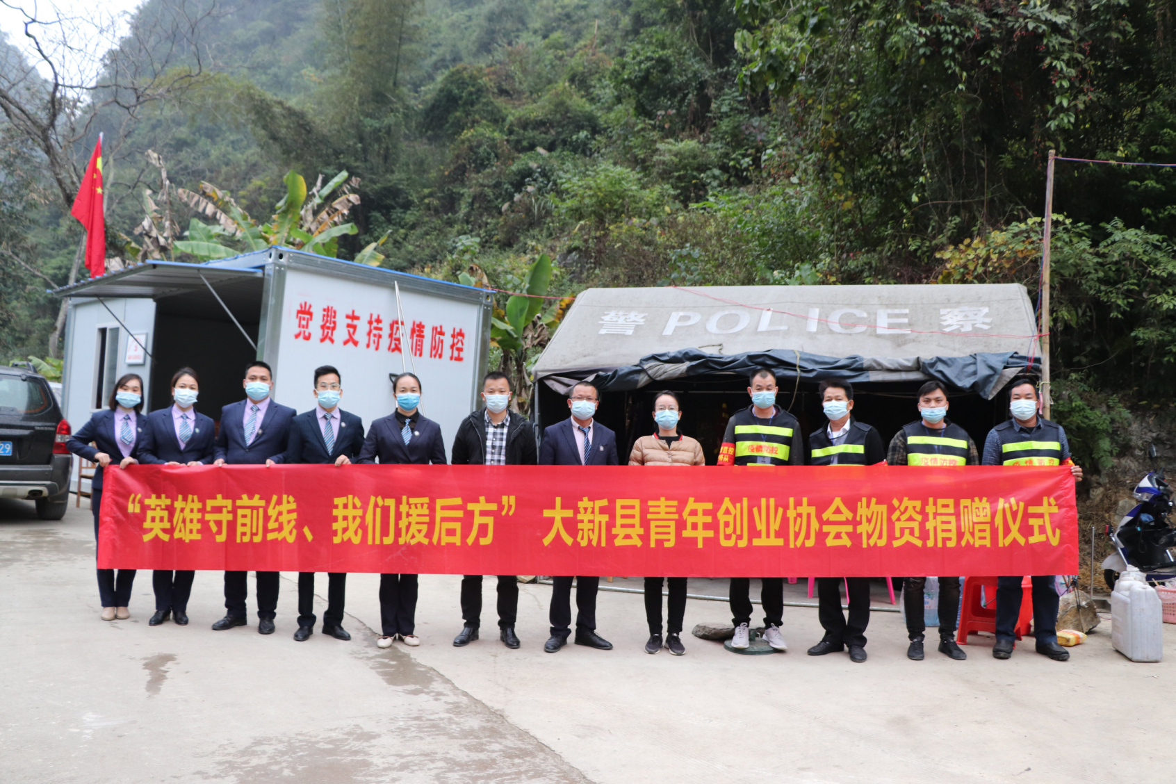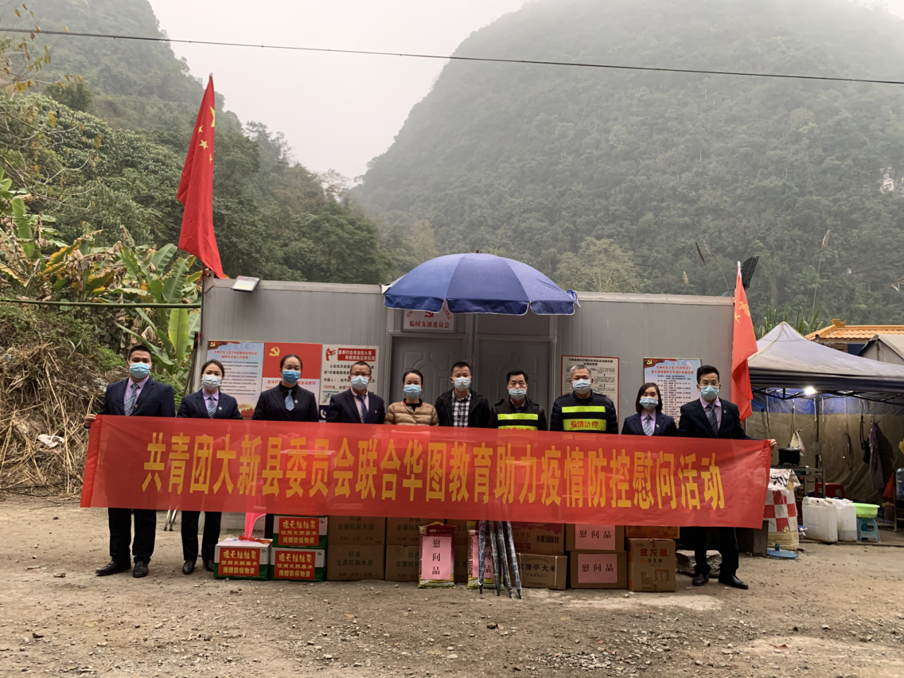 1月7日下午,共青团大新县委员会联合大新县青年创业协会、华图教育来到硕龙镇念典村念斗屯,走访慰问奋战在疫情防控一线的工作人员,将党组织的关怀和温暖传递到每一位守卡人员身边,对一直坚守岗位的边境守卡人员致以真诚的慰问和崇高的敬意。