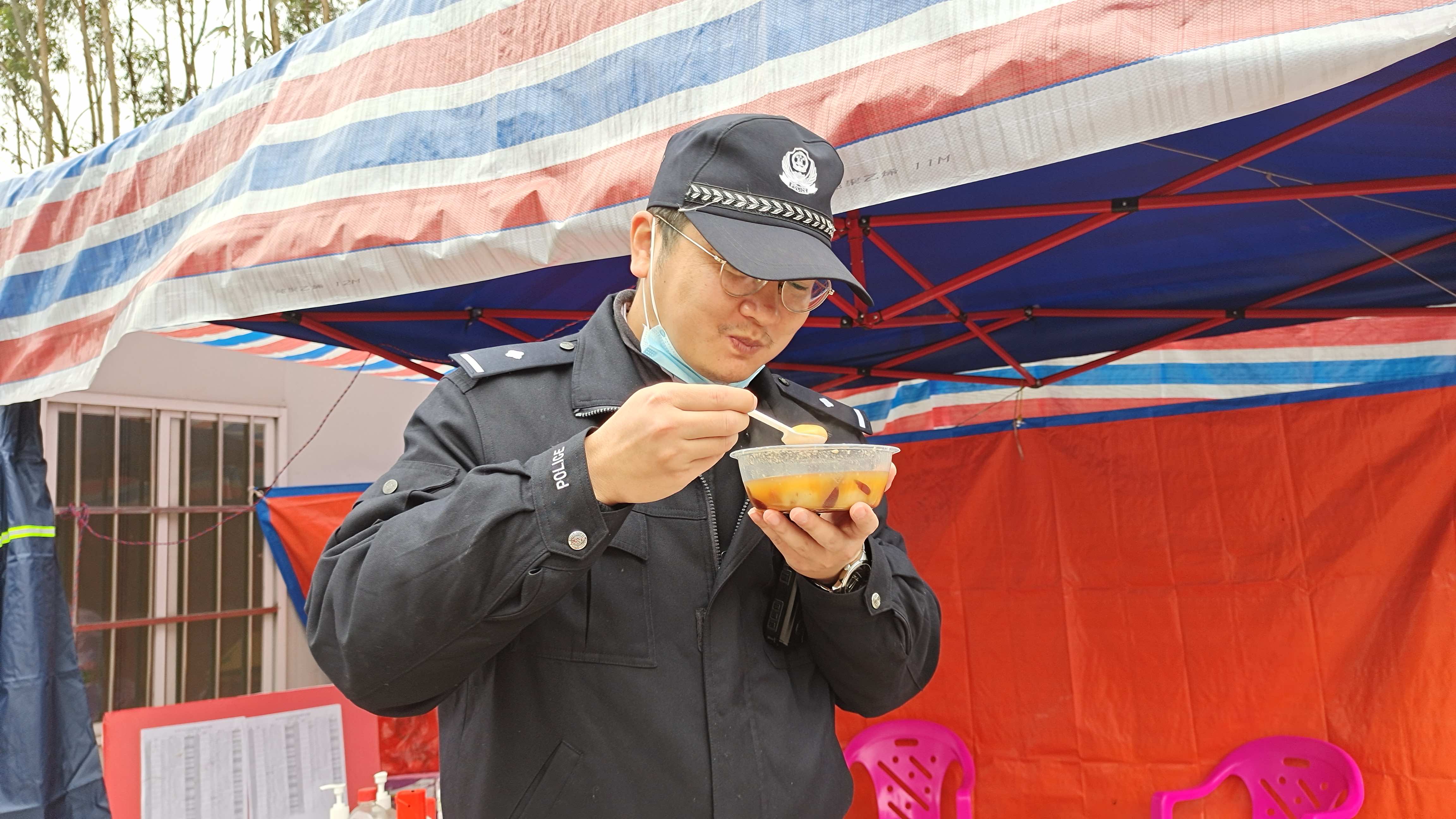 防疫值守人员吃汤圆