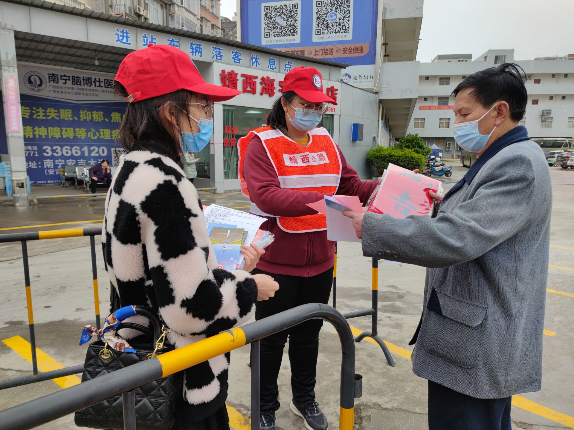 1月26日,联合靖西靖宇汽车站及驻守在汽车站的相关防疫工作人员,靖西公路养护中心志愿者在靖西靖宇汽车站开展学雷锋志愿服务活动。通过为司乘人员提供道路指引、搬运行李、协助疫情防控扫码、道路安全文明宣传和疫情宣传等便民服务;向他们赠送对联、窗花、福字、口罩、方便面、矿泉水、八宝粥等便民物资,志愿者们暖心的问候和服务让广大司乘人员感受到了家乡人民的暖暖的爱意,营造了平安、便捷、温馨、诚信、绿色春运的和谐氛围,提升人民群众的获得感、幸福感、安全感。