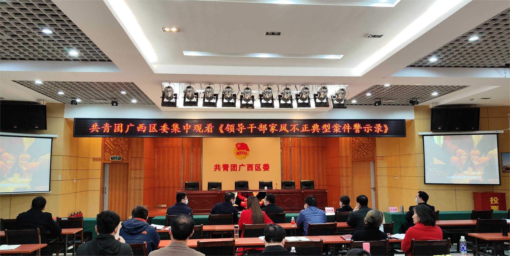 此次专题警示教育活动是共青团广西区委清廉机关和清廉家庭建设工作内容之一,活动覆盖了机关和直属事业单位全体党员干部及家属。书记班子将观看警示教育电教片作为2021年度专题民主生活会的重要内容,并以普通党员身份参加了所在党支部的活动。