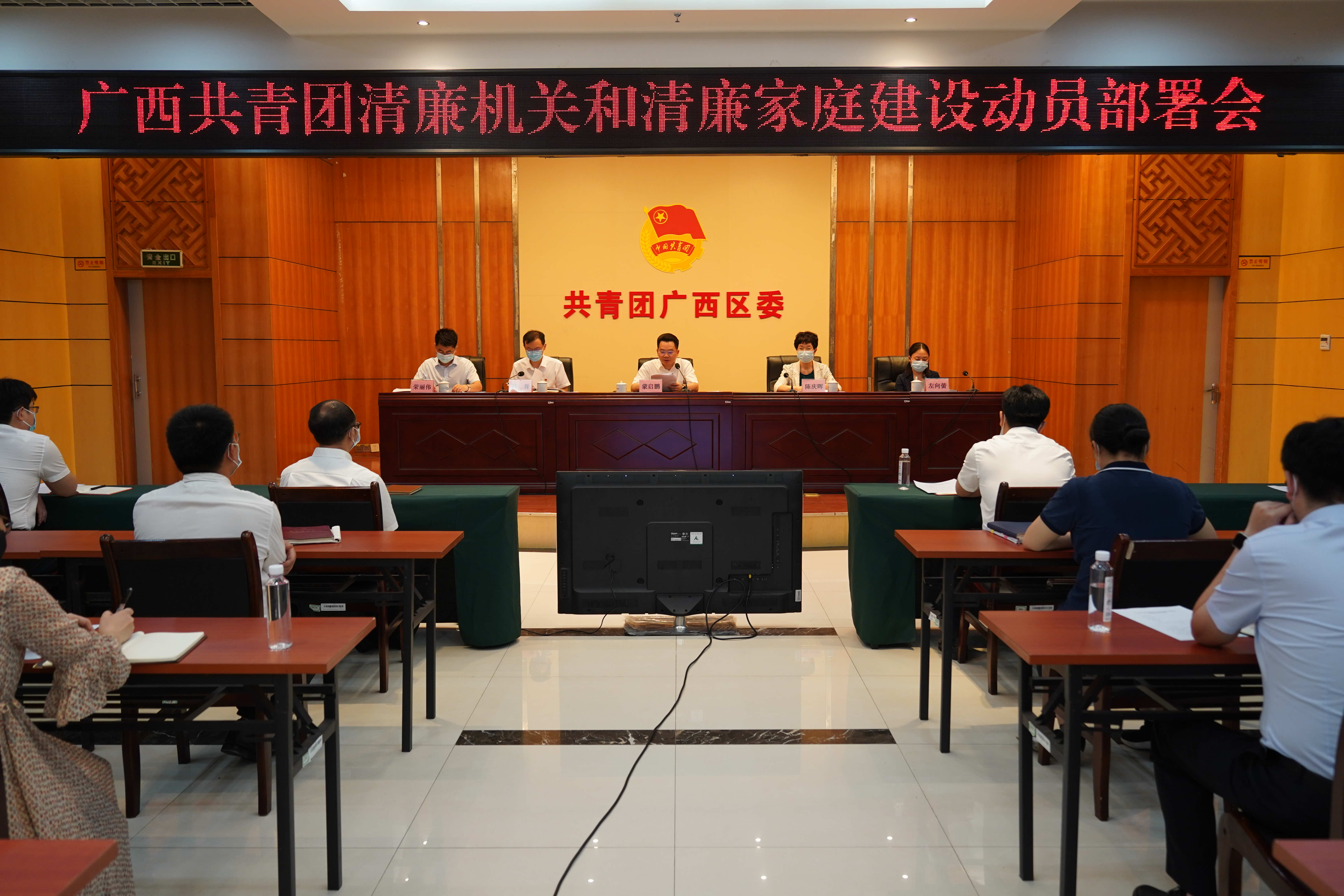 4月29日,共青团广西区委召开广西共青团清廉机关和清廉家庭建设动员部署会,贯彻落实党中央和自治区党委关于廉洁文化建设和清廉广西建设的决策部署,就推动清廉机关和清廉家庭建设在全区各级团组织中走深走实作出部署。共青团广西区委书记蒙启鹏出席会议并讲话,自治区纪委监委驻自治区总工会机关纪检监察组二级巡视员、副组长陈庆晖到会指导。